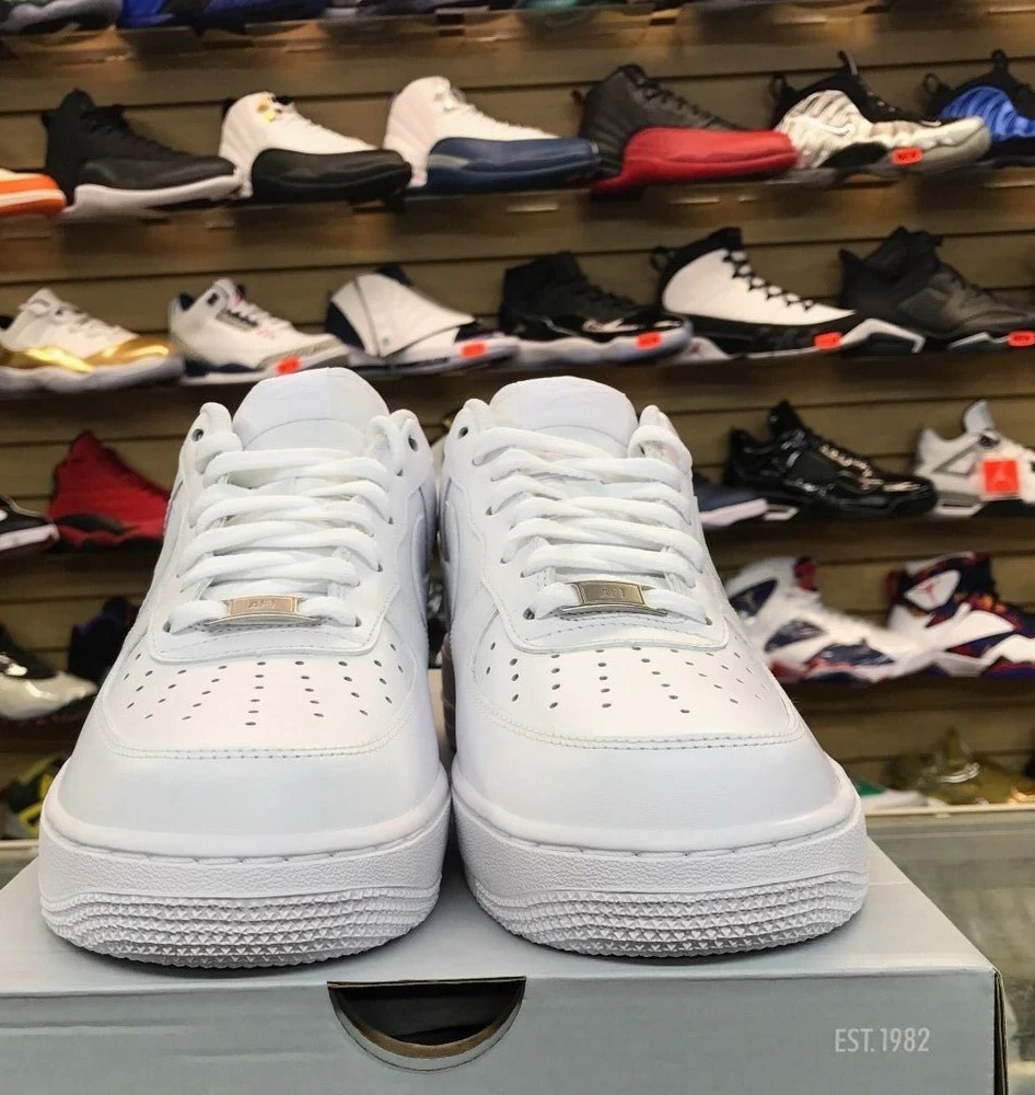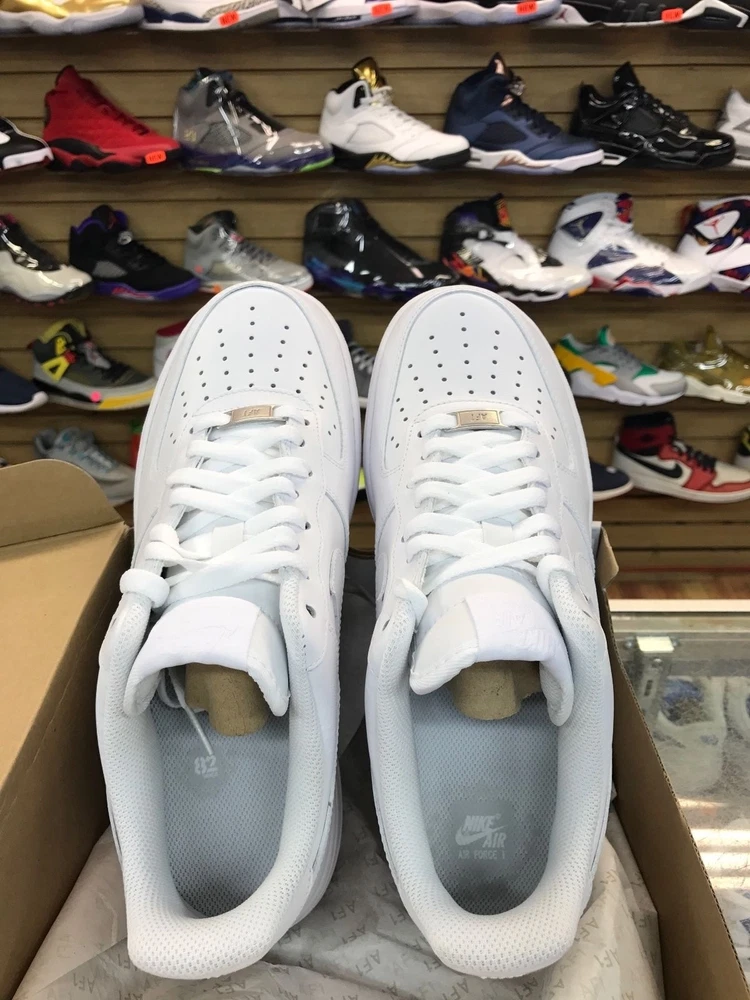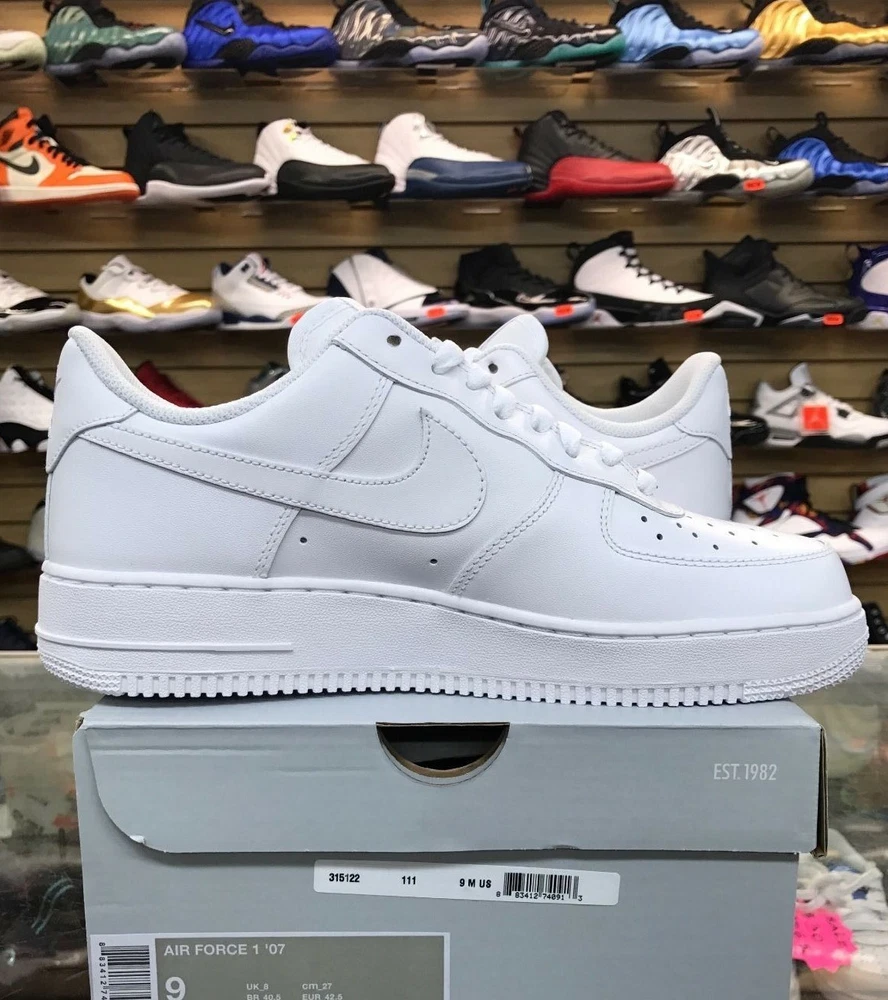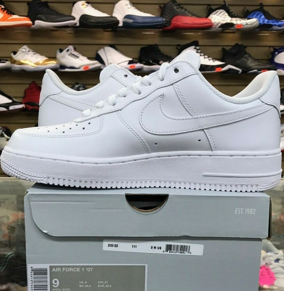 Elevate your sneaker game with these Nike Air Force 1 Low '07 in white. With a low top shoe shaft style and made with leather, these sneakers are perfect for any athletic activity, including boxing. The 2018 release year and style code 315122-111 ensure that you're wearing a fresh pair of shoes that will make a statement. These Nike Air Force 1 Low sneakers are a must-have for any sneakerhead. The white color and athletic style make them versatile for any occasion. The shoes come in a men's size 9 and are part of the Nike Air Force product line. Don't miss out on adding these sneakers to your collection.