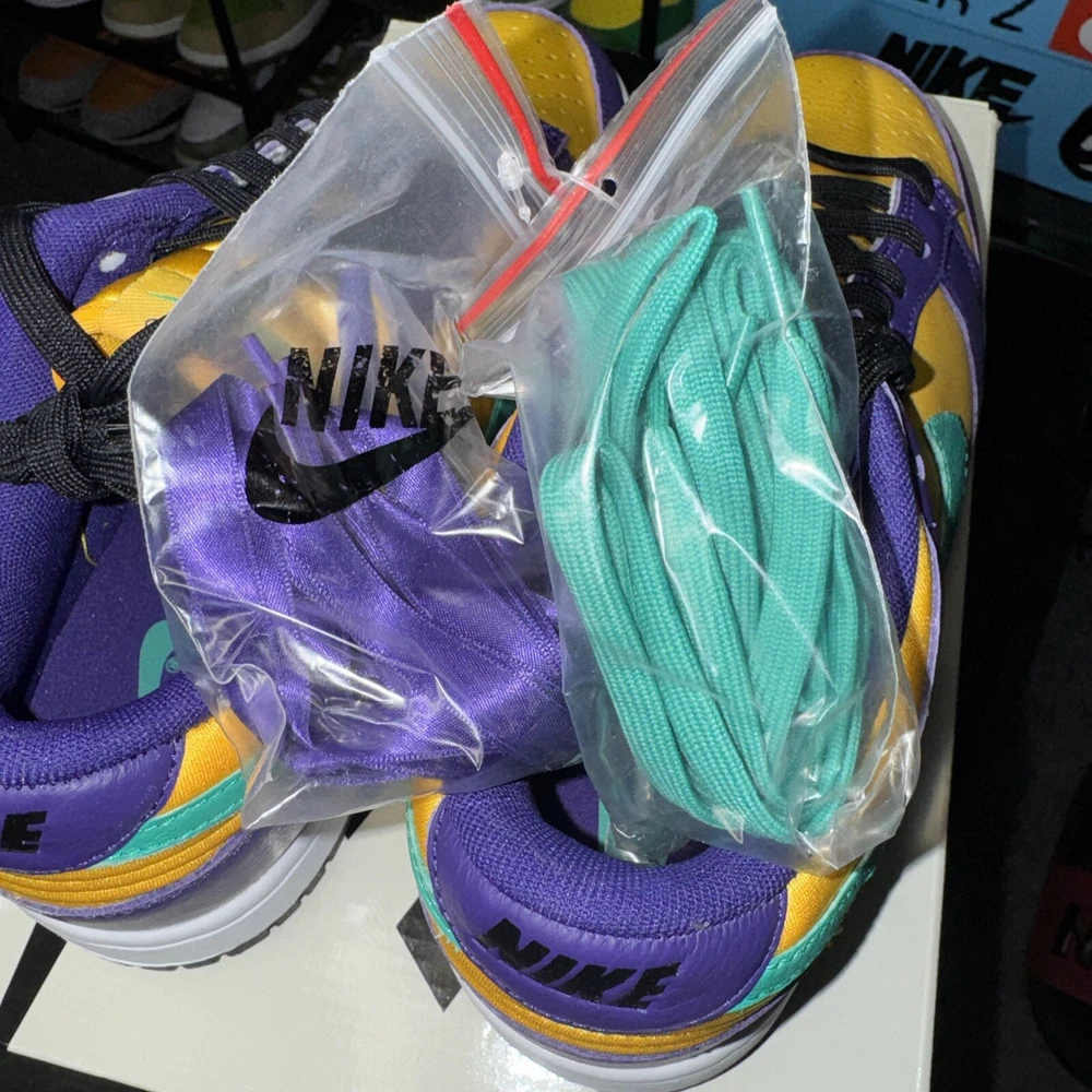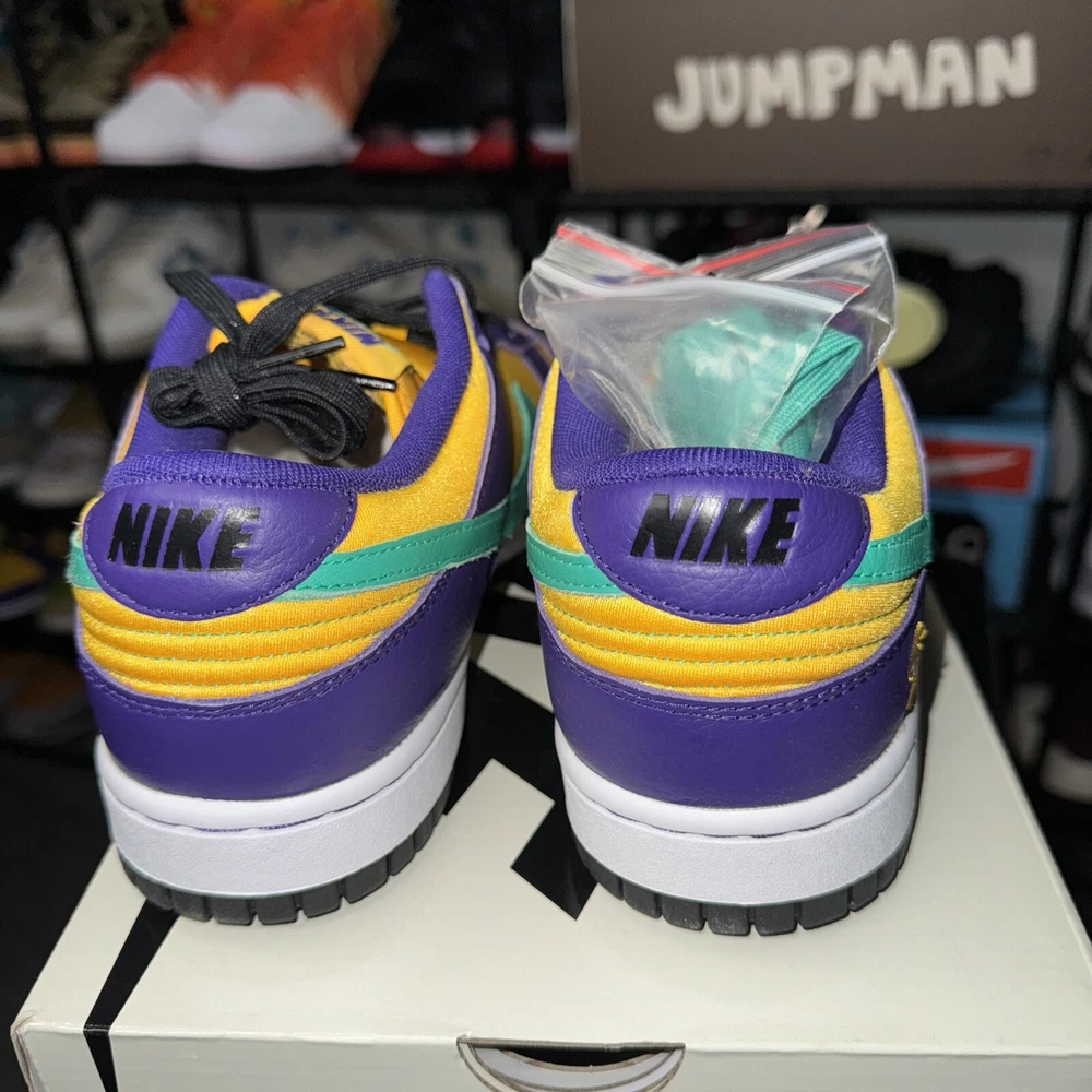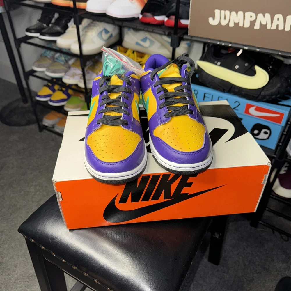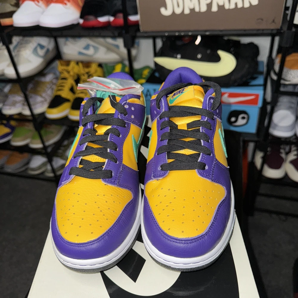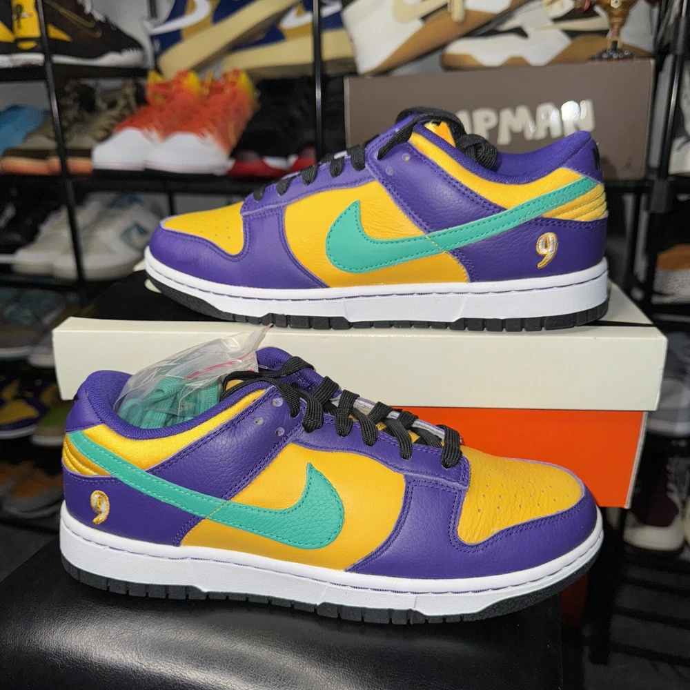 Step up your sneaker game with the Nike Lisa Leslie x Dunk Low Sparks W! This stylish and comfortable athletic shoe features a low top shoe shaft style, leather upper material, and a striking Court Purple/Clear Emerald manufacturer color. The shoe is part of the Nike Dunk product line and has a unique style code of DO9581-500. The Nike Dunk is a must-have for women who love to stay active and want to look good doing it. This sneaker has a US shoe size of 9 and is perfect for any woman who wants to add a touch of style to their workout wardrobe. Don't miss out on this opportunity to own a pair of the Nike Lisa Leslie x Dunk Low Sparks W!