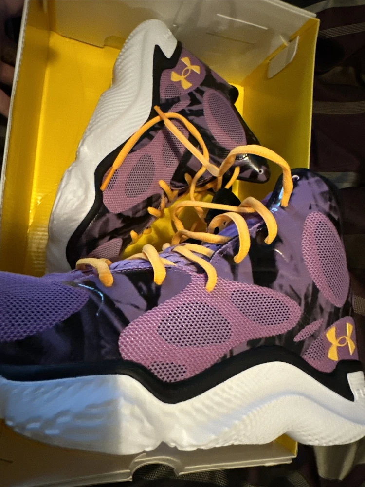 Elevate your game with these Under Armour Anatomix Spawn sneakers. The vibrant purple colorway adds a pop of flair to any outfit, while the durable nylon upper material ensures long-lasting wear. These athletic shoes are designed for men, with a UK shoe size of 8 and US shoe size of 9. The style code for this model is 3022384-502, and it features a sleek sneaker style that's perfect for any sports activity. The EU shoe size is 42.5, making it a versatile option for athletes of all sizes. Add these Under Armour sneakers to your collection today and experience the perfect combination of style and comfort.