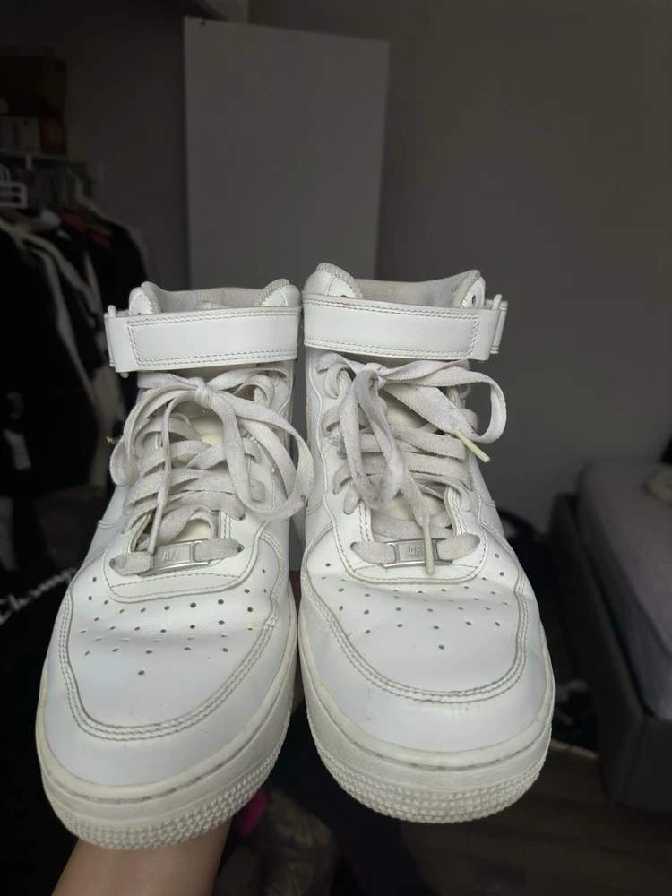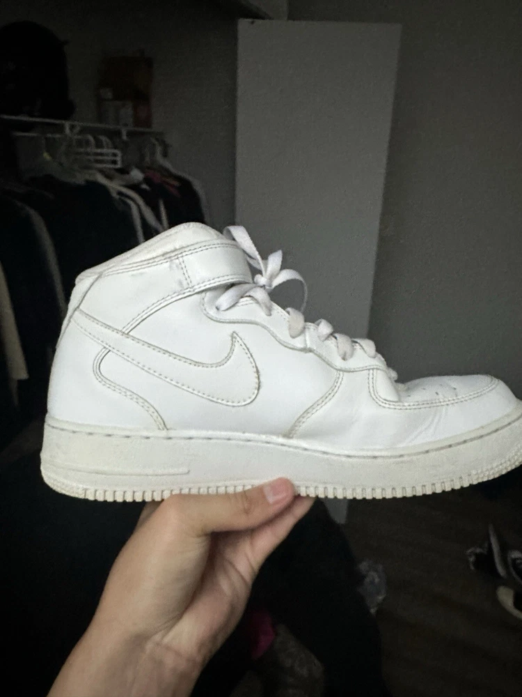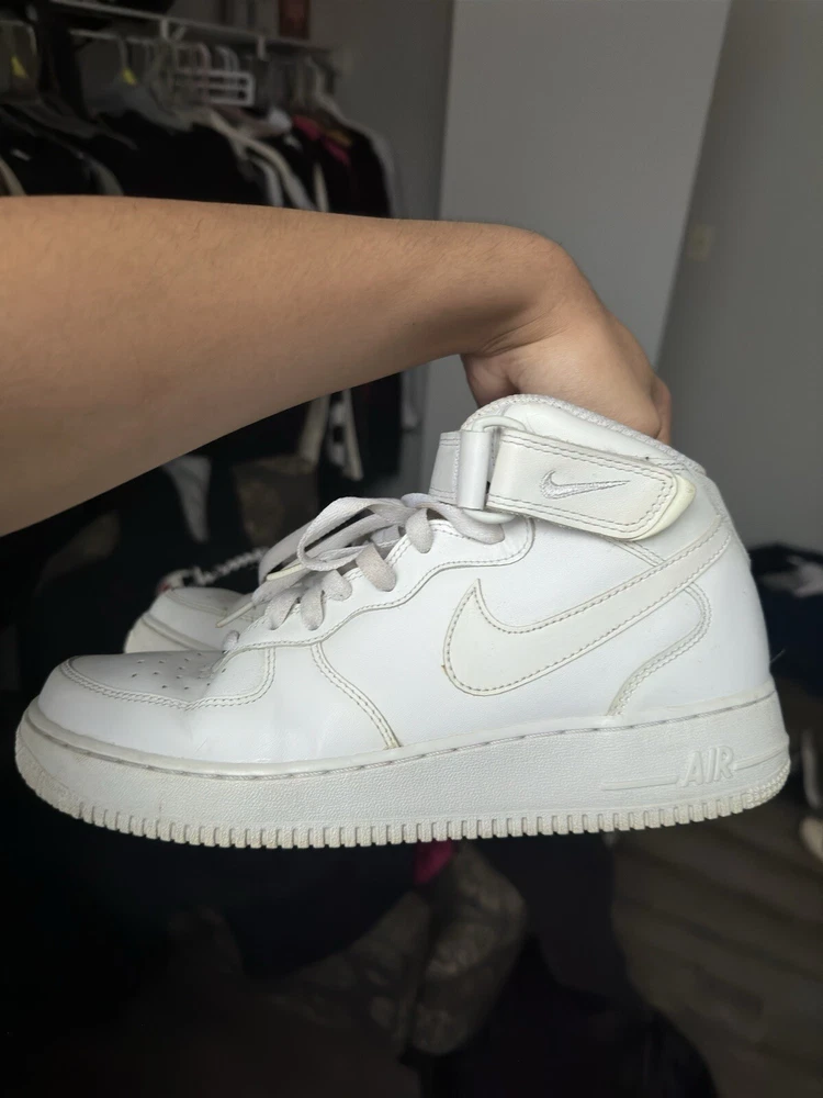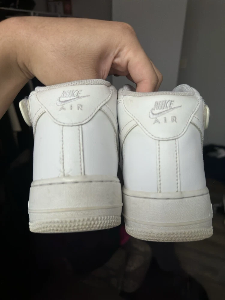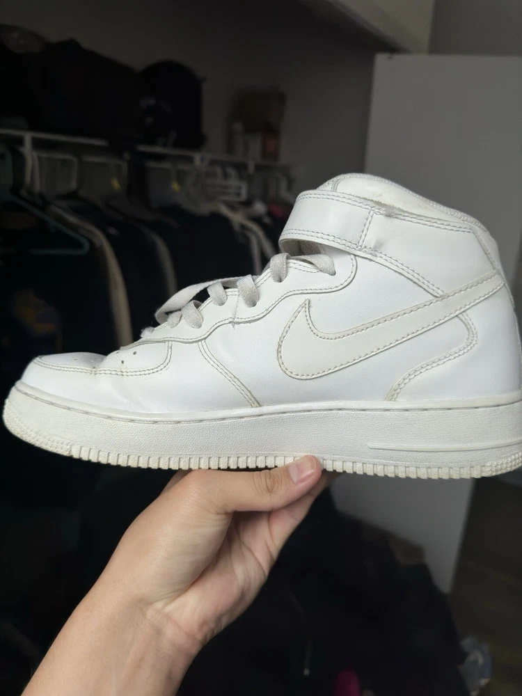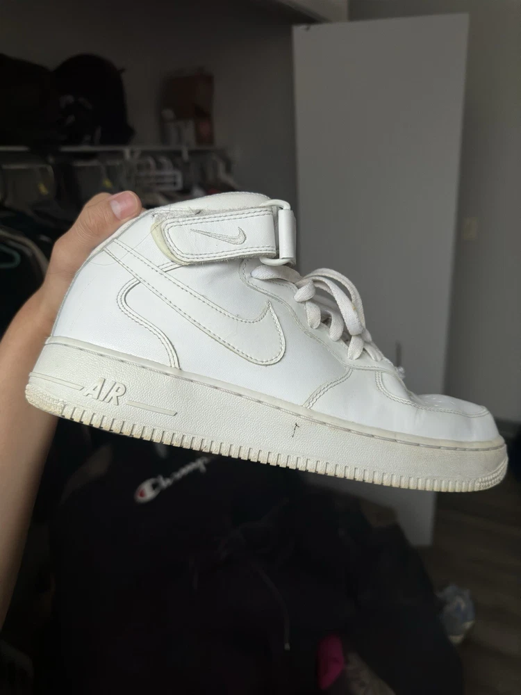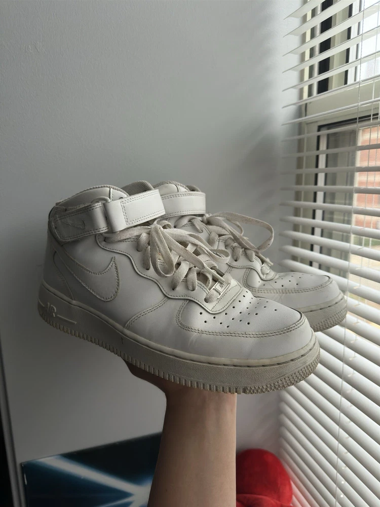 Used AF1 Mid without box. This Nike Air Force 1 sneaker is a must-have for any sneaker enthusiast. The shoe features a mid-top style and a white and white colorway, with the style code 315123111. It is a men's athletic shoe that is perfect for any occasion. The shoe is made by Nike and is part of the Nike Air Force product line. The shoe was released on September 21, 2017, and has a US shoe size of 9.5. It is a comfortable and stylish sneaker that will keep you looking great all day long. The shoe is perfect for any man who wants to add a great sneaker to their collection. Get yours today!