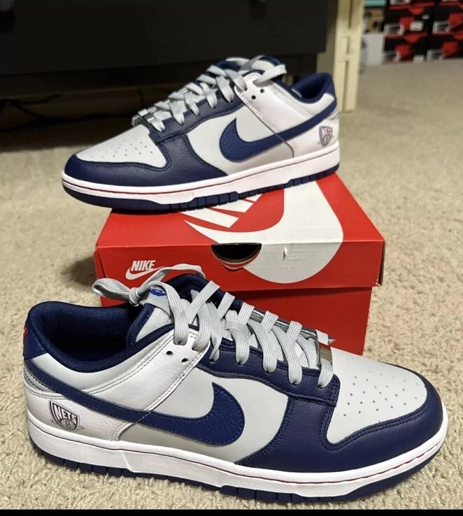 This Nike Dunk sneaker is a must-have for any basketball fan. Designed in collaboration with the NBA and released for the 75th Anniversary, this pair features the New York Nets team colors and logo. The low top style and athletic type make it perfect for both on and off the court. The sneaker is made of high-quality leather and has a comfortable fit, with a shoe width of D. Its release year is 2021, and it belongs to the Nike Dunk product line. This Nike Dunk x NBA EMB Low sneaker is a great addition to any sneaker collection and a perfect gift for any basketball fan.