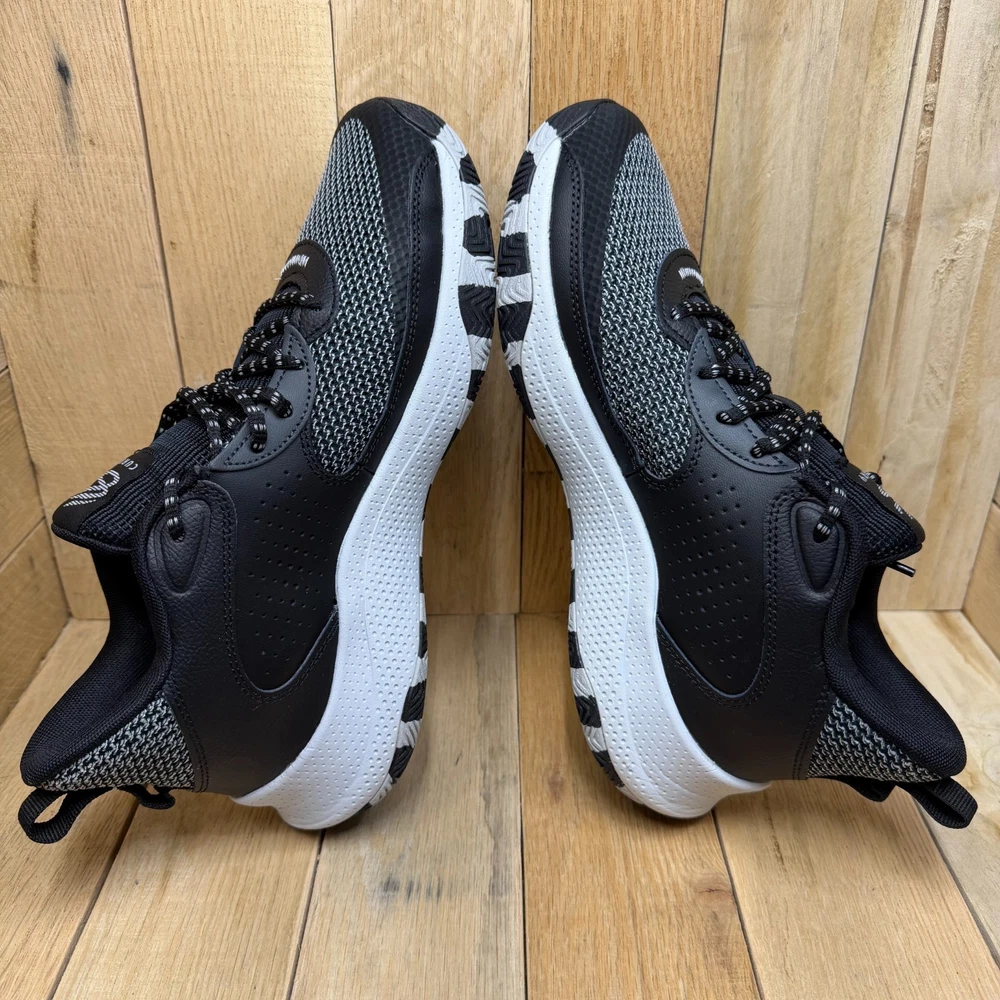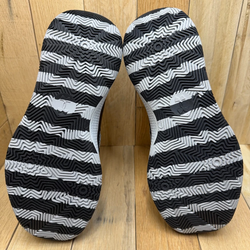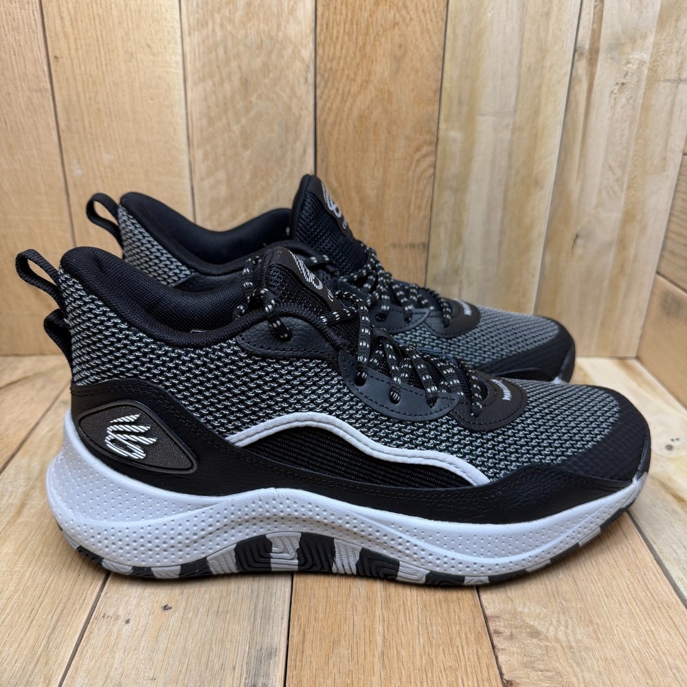 Under Armour Curry 3Z24 basketball shoes offer a performance-driven design with a sleek black and grey colorway. These mid-top sneakers feature a breathable mesh upper paired with durable synthetic overlays for support during quick cuts on the court. The Micro G foam midsole provides responsive cushioning, while the unique zebra-patterned rubber outsole ensures multi-directional traction. Designed with a secure lace-up closure and heel pull tabs, these sneakers combine Stephen Curry's signature style with reliable athletic functionality. Brand: Under Armour Model: Curry 3Z24 Style Code: 3027626-001 Color: Black/Grey/White Closure: Lace Up Upper Material: Mesh/Synthetic Midsole: Micro G Foam Outsole: Rubber Pattern: Zebra/Wavy Toe Shape: Round Toe Shoe Shaft Style: Mid Top Performance/Activity: Basketball Cushioning Level: Moderate Keywords: Stephen Curry, Hoops, Court, Athletic, Sportswear, Monochrome, Performance, Breathable, Lightweight, Gym, Training, Streetwear, Zebra Print If you have any additional questions, please don't hesitate to contact me direclty.