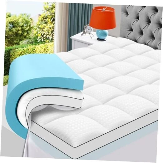 Return Policy Fast Delivery Trusted seller King Size Dual Layer 4 Inch Memory Foam Mattress Topper, 2 Inch Gel Memory Foam and 2 Inch Cooling Pillow Top Mattress Pad Cover for Back Pain, Medium Support Product Description 2 In 1 ADJUSTABLE DUAL LAYER DESIGN - This plush dual layer mattress topper features a 2-inch cooling gel memory foam and a 2-inch quilted breathable pillow top mattress topper with snow down alternative overfilling. When combined, it can become a 4-inch thick mattress topper, which not only has strong support, but also provides a cloud-like comfortable experience LUXURY EXTRA THICK MATTRESS TOPPER - It uses 3D&7D fiber made Three Dimensional Structure that makes the air circulate, gives superior comfort and cooling without extra heat and sweat caused by memory foam or traditional mattresses. Square jacquard surface with double border pillow top construction can make your bedroom no longer monotonous IMPROVE SLEEP & RELIEVE PAIN - The 4-inch buffer space gives you ergonomic support from head to foot. Fit the body curve, so that your shoulder, neck, back and spine can be in the most relaxed state, so as to relieve pain. The medium firm memory foam and the pillow top mattress pad cover give you the best sleep experience HIGH QUALITY & EASY CARE - 400TC combed fiber made mattress topper is durable, no risk being ripped even with frequently washing. Machine wash separately in cold water. Tumble dry on low heat or line dry. Wash them regularly to keep your mattress clean and free of stains keeps it smelling fresh and helps you to keep you healthier PACKAGE & SERVICE - Due to vacuum packaging, it may look thinner after opening the package, please take out the foam memory and the mattress pad, lay them flat in a well-ventilated area for 48-72h to remove the slight smell of the foam memory and restore the fluffiness of the mattress pad. We will provide a 10-year warranty service. You can contact us directly to get a satisfactory solution Shipping Returns Payment Shipping Shipping is FREE to all addresses other than APO/PO boxes in the lower 48 states. All our stock ships from US-based warehouses. Shipped via USPS or UPS (depending on location and package weight) Unless stated otherwise, all orders will ship within 24-72 hours of your payment being processed. Check our feedback to see the great reviews of FAST shipping we offer. Returns Seller does not accept returns Payment We currently accept payment via eBay managed payments only. Once payment is cleared, we will dispatch your shipment within 1-3 business days. Please refer to the "Shipping" tab for more information regarding shipping speed to your destination.