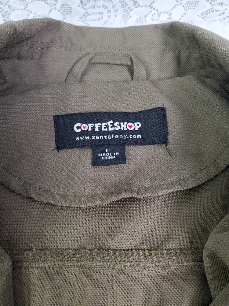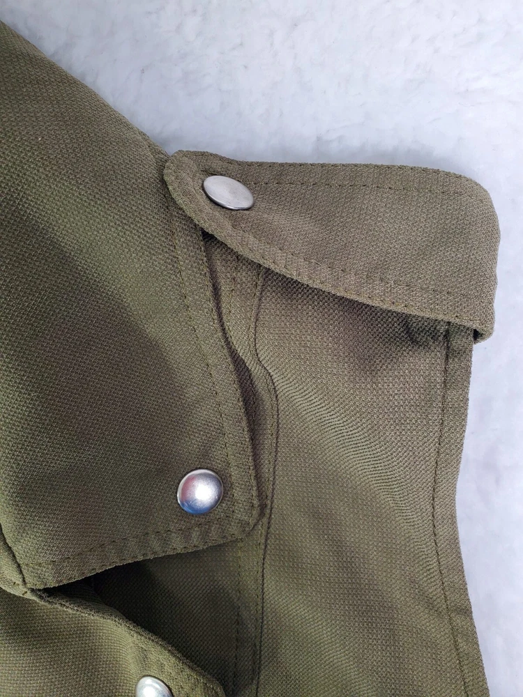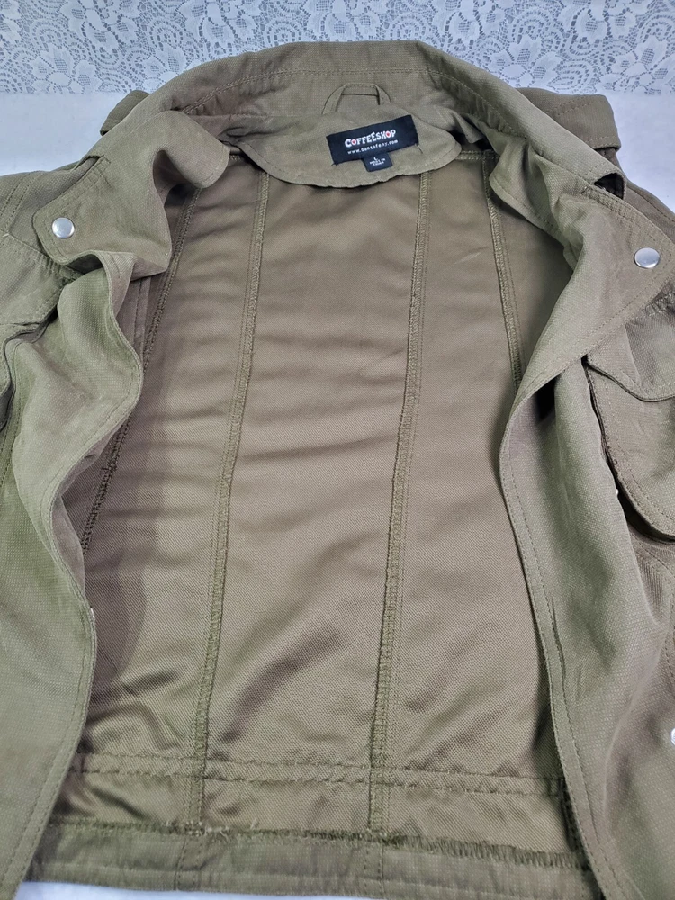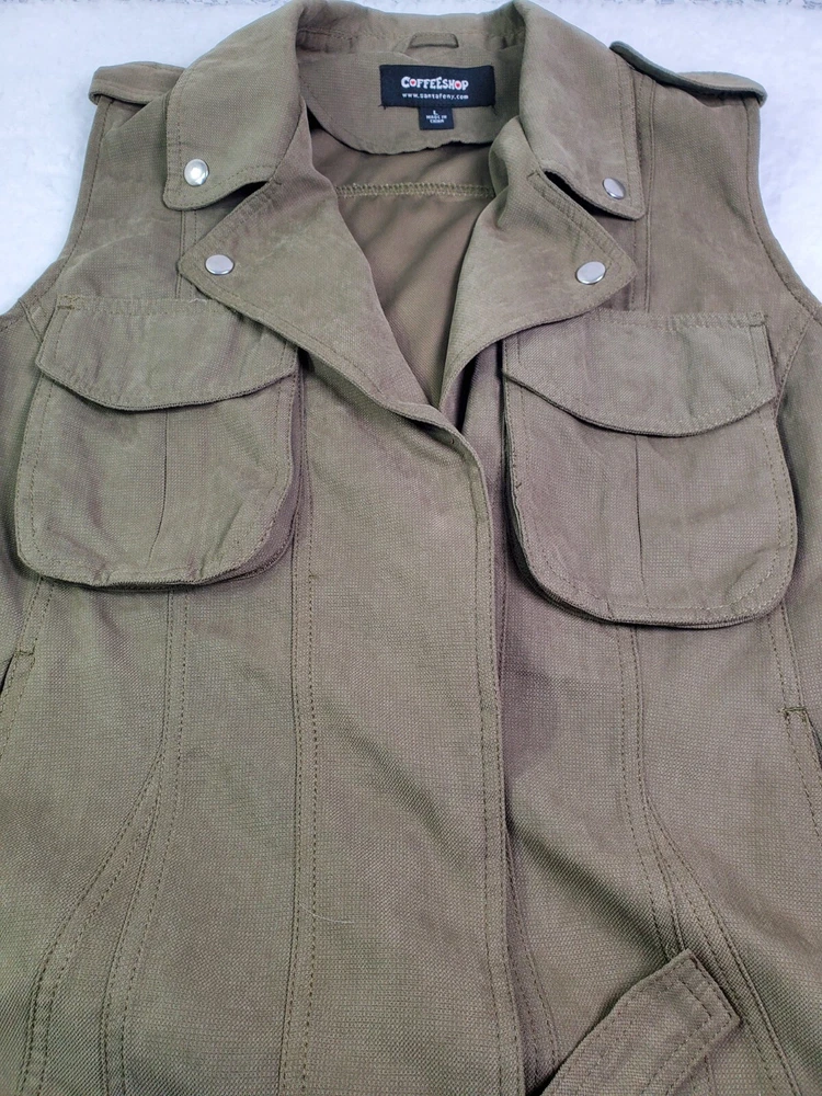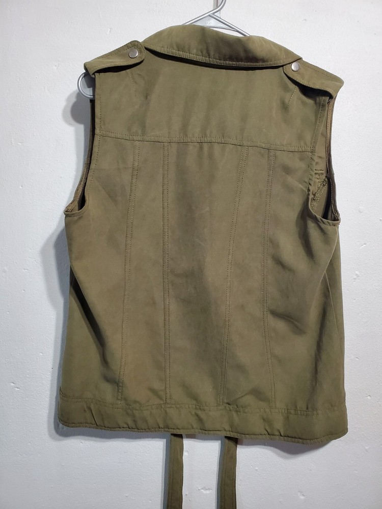 Size L Olive Green Coffee Shop Vest with Snap Utility Tie Detail