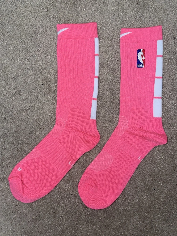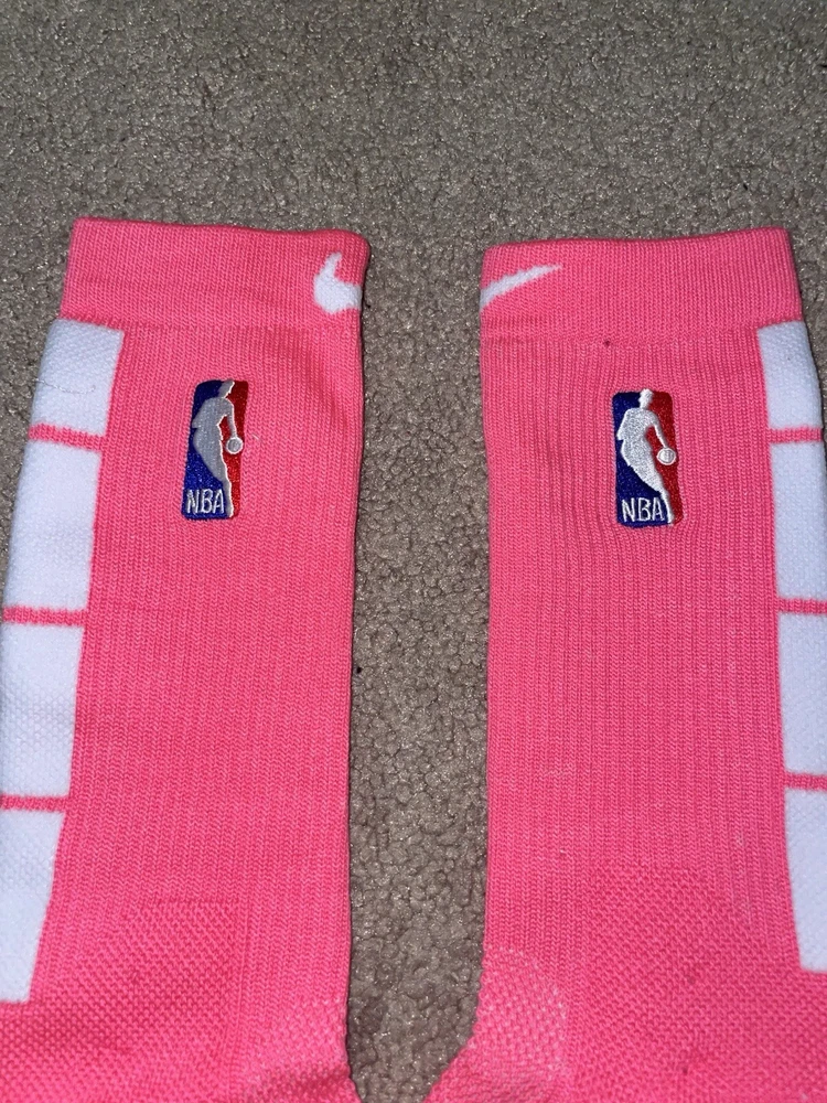 Size Large or 8-12 Mens-Nike Elite Dri-Fit NBA Basketball Crew Socks Pink/White