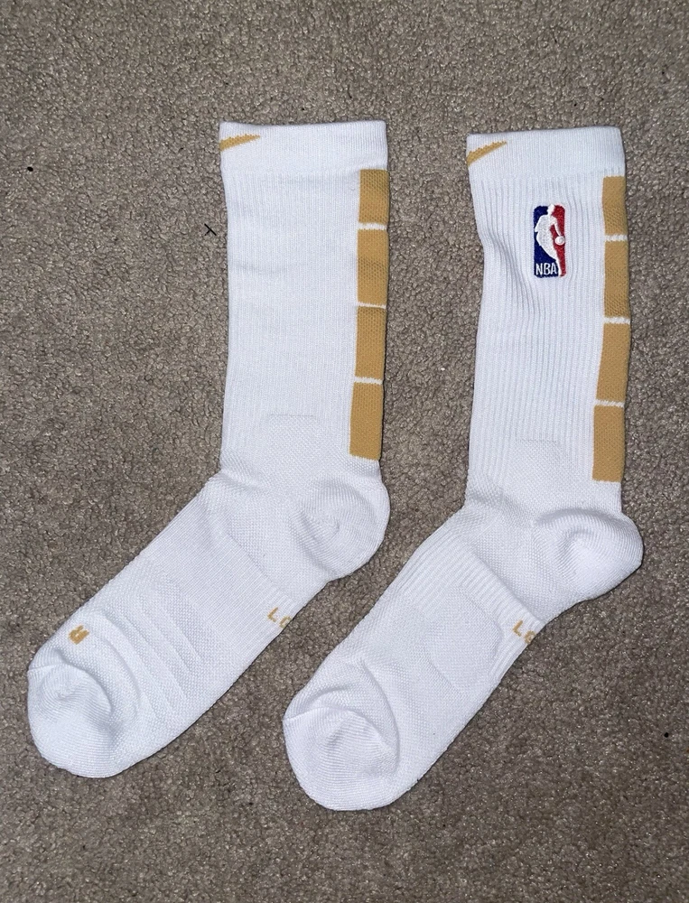 Size Large or 8-12 Mens-Nike Elite Dri-Fit NBA Basketball Crew Socks White/Gold