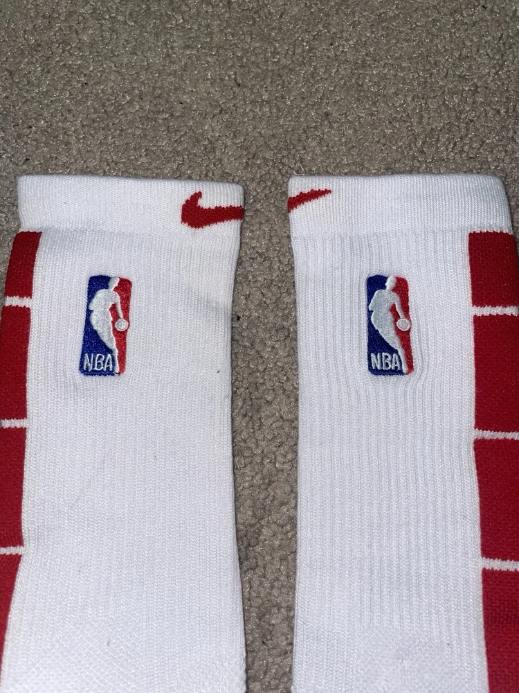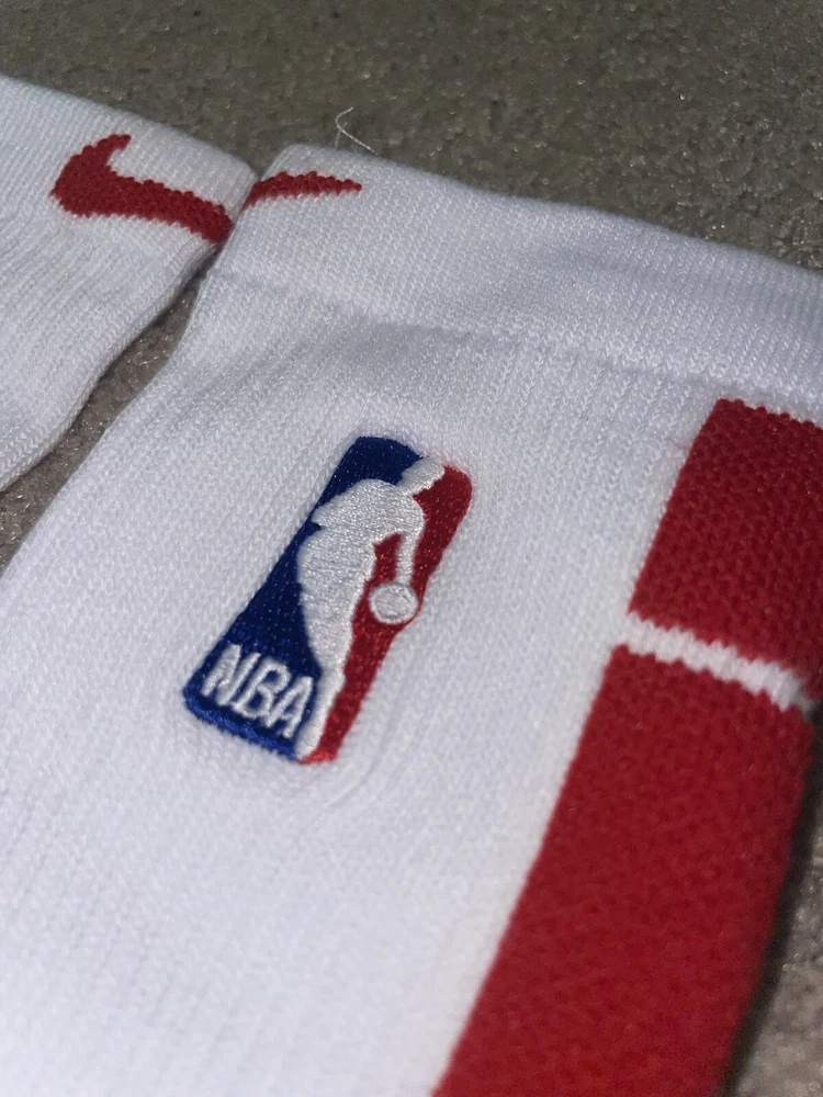 Size Large or 8-12 Mens-Nike Elite Dri-Fit NBA Basketball Crew Socks White/Red