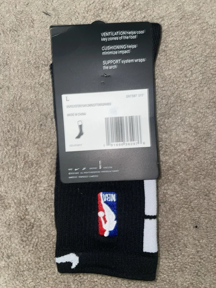 Size Large/8-12m - Nike Elite Dri-Fit NBA Basketball Crew Socks Black/White