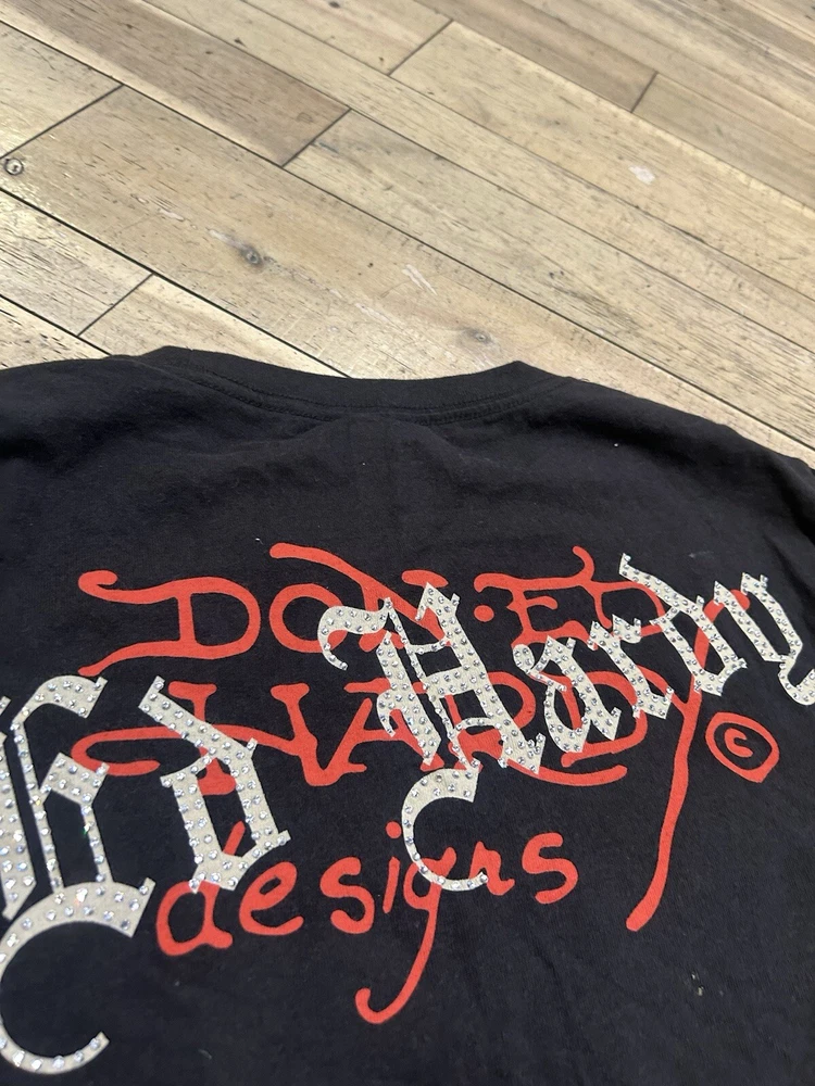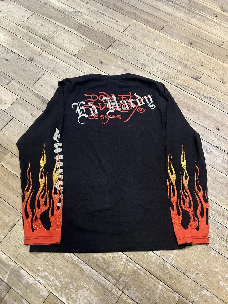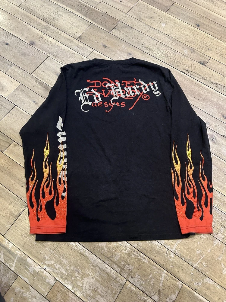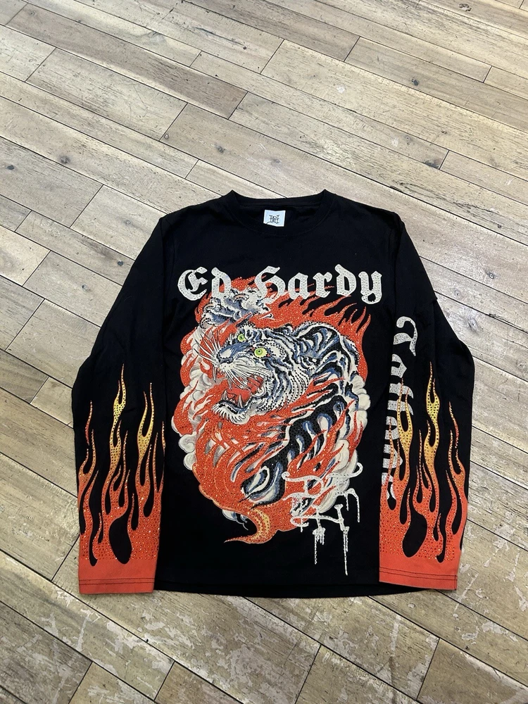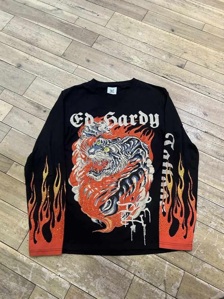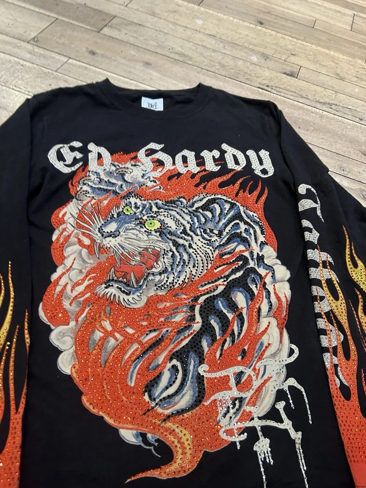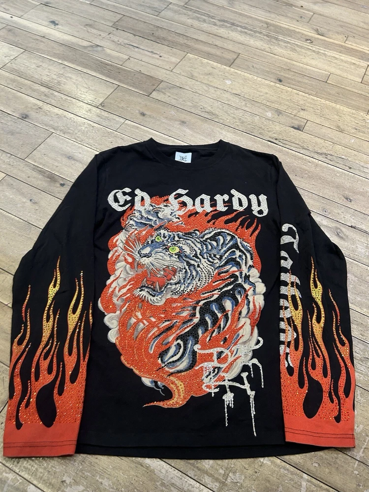 Size M- Ed Hardy Fire Tiger Studded Long Sleeve Shirt - Black