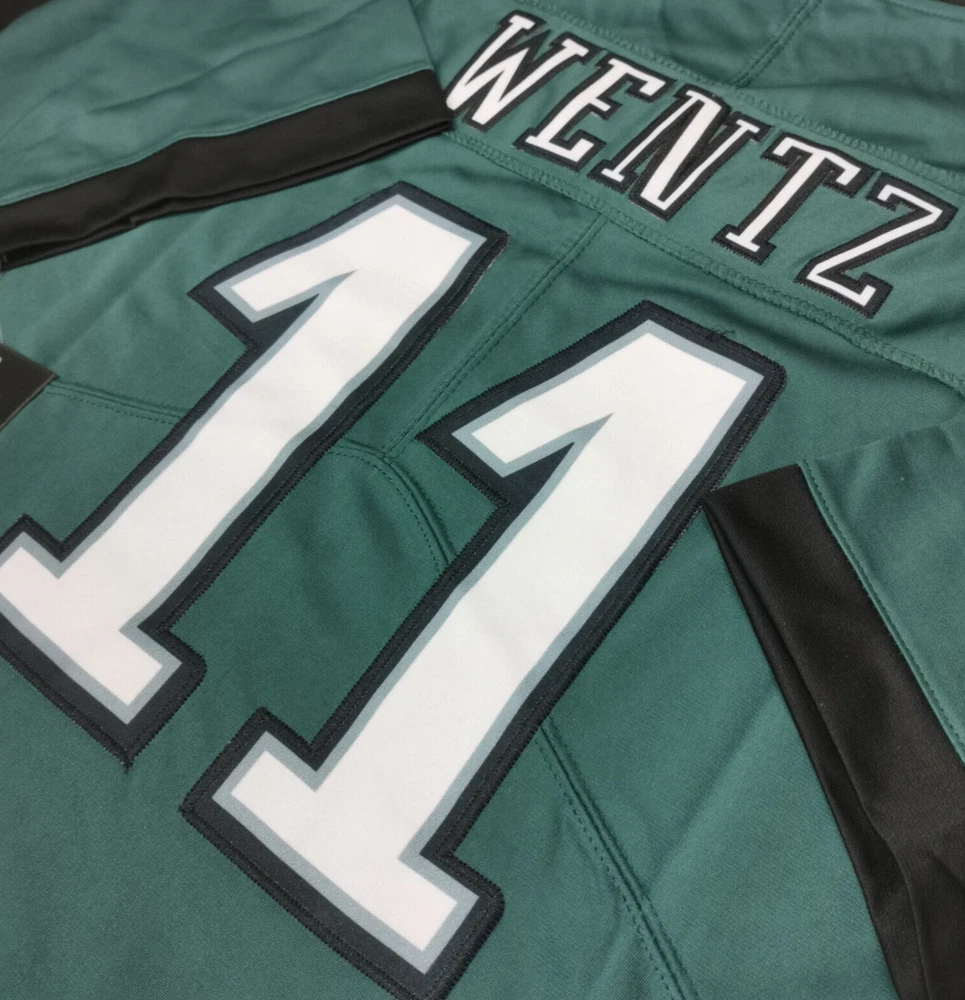 Size Small Carson Wentz #11 Eagles Vapor Green Stitched Jersey. Brand New And Never Worn. Stitched Letters And Numbers. Size Tag = Small. If size pictured is different than the post listed, it's because I have multiple sizes of the exact same jersey. Just feel free to contact me if you need other size. *** Processing/handling time is 3 business days.*** Plus approximately 8-10 business days for delivery. For a total of about 10-15 business days, VIA USPS. *** If you cannot accept this timeline, please do not place the order, Thank you.***