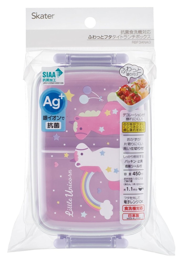 Skater Little Unicorn 450ml Bento Box with Antibacterial Dome Lid for Kids