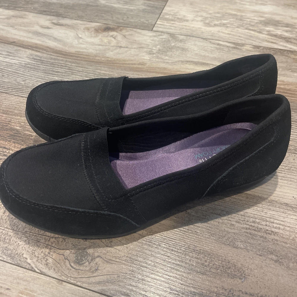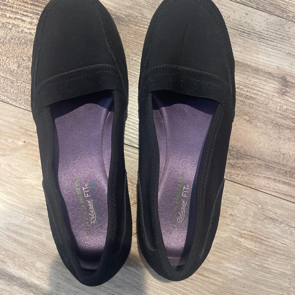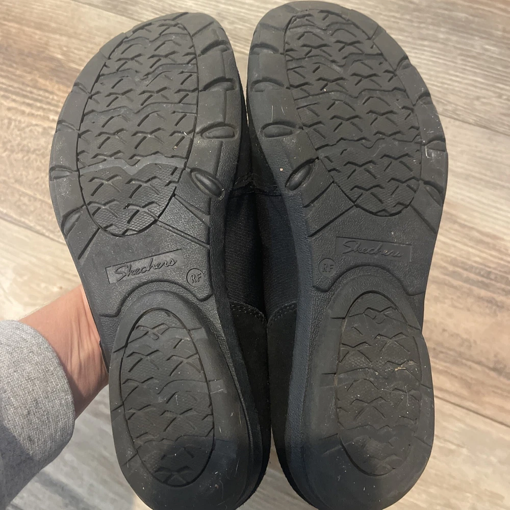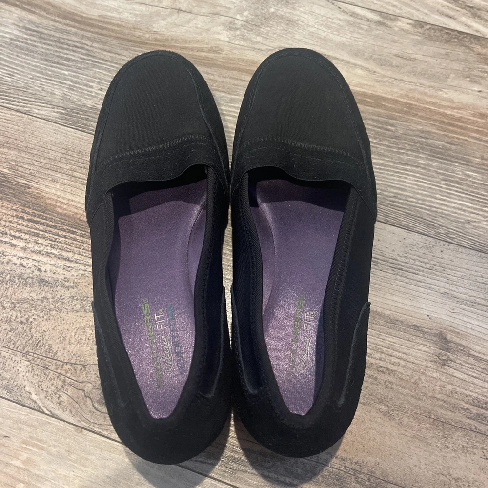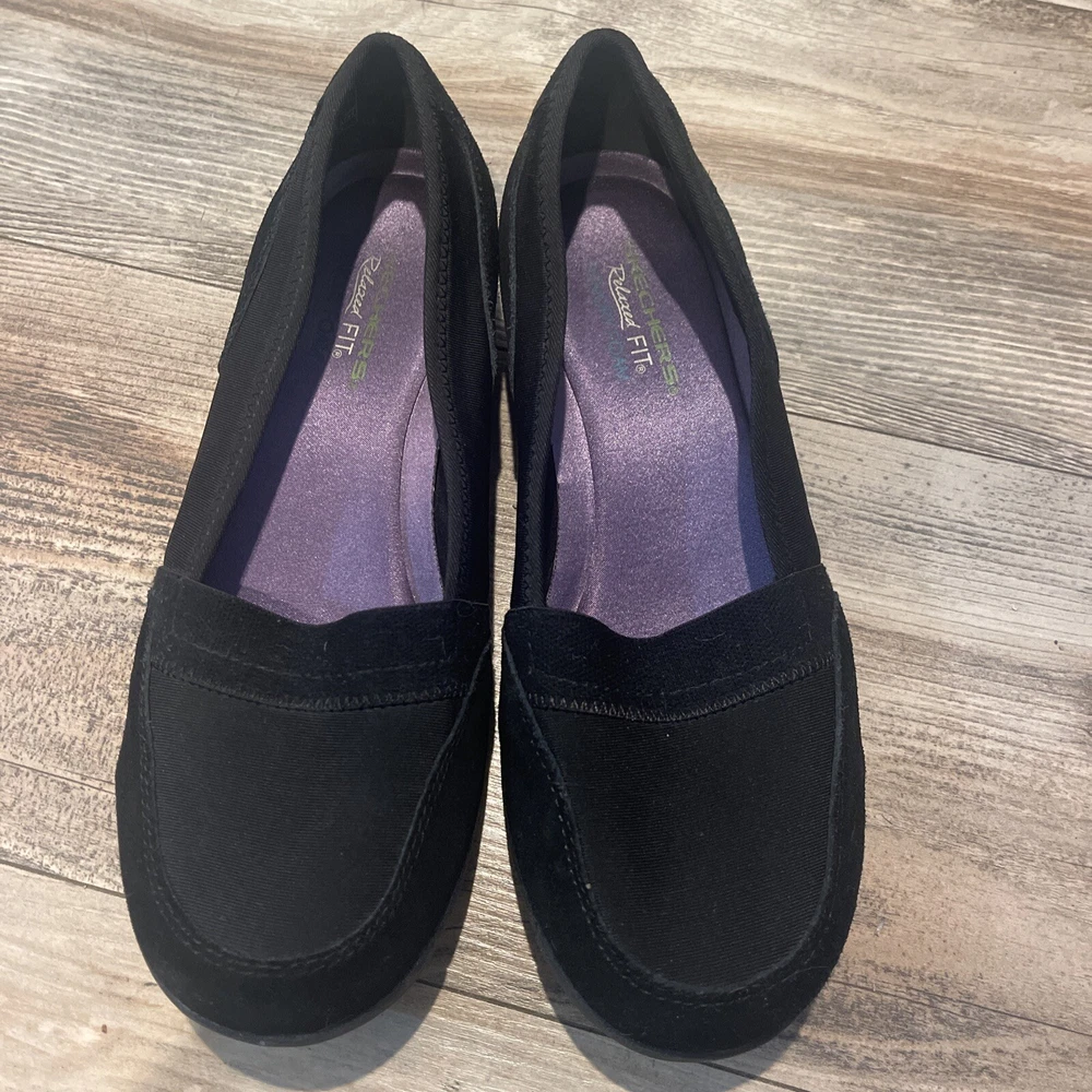 Skechers Black Womens Suede Leather Memory Foam Relaxed Fit Slip On Shoes Size 8
