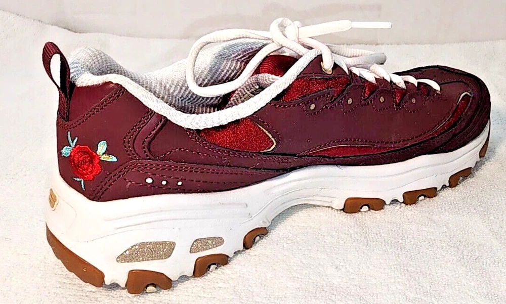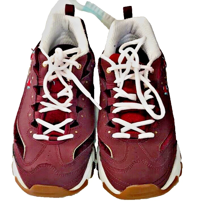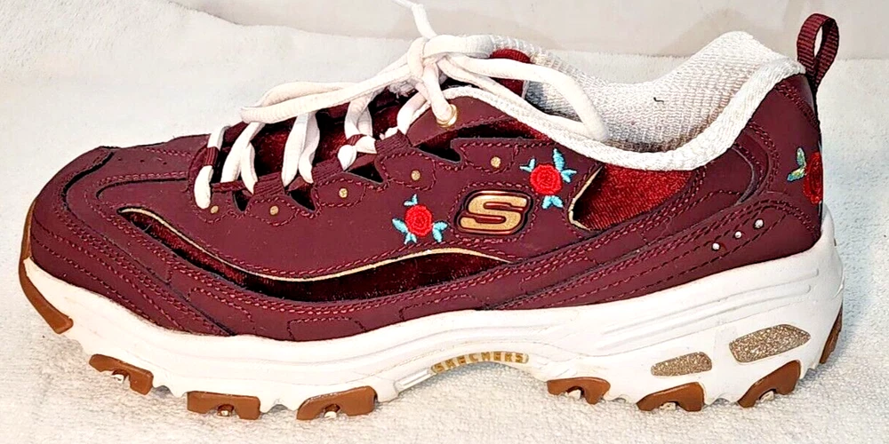 Feature a lace-up closure, low-top shoe shaft style, and a comfortable M shoe width. Unique design with the red floral pattern with rhinestone accents and embroidered logo detailing adds a touch of spark to these athletic sneakers. Sneakers are suitable for activewear, casual wear, and workwear. Arch support, cushioning, and padded insoles for maximum comfort. Ideal for walking, school, and running & jogging. Very Good Condition No blemishes, stains, tears