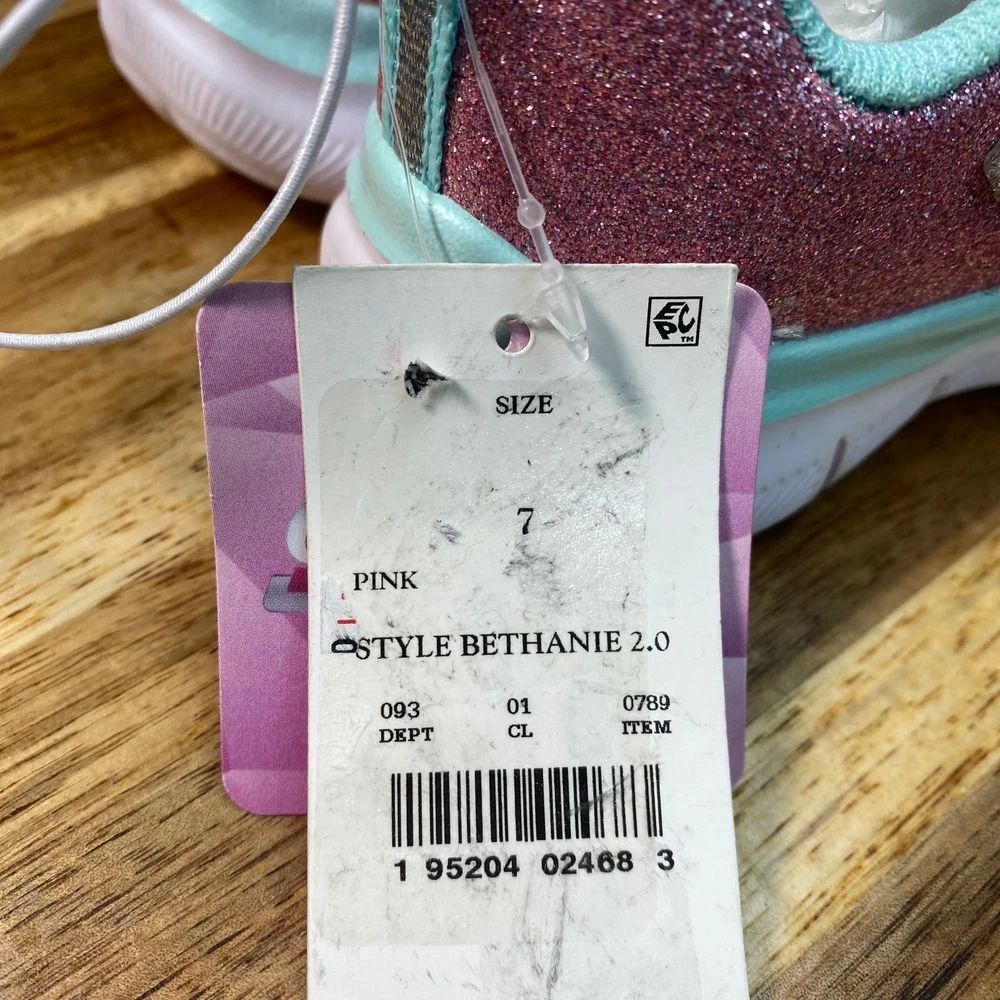 New with tags Skechers athletic sneakers featuring glitter details, memory foam insole, and elastic laces with hook-and-loop strap closure. Color: Multicolor Department: Girls Style: Athletic Sparkle Sneaker Type: Athletic Heel Height: Flat (Under 1 in) Model: Skechers Sport Sparkle Lite Upper Material: Synthetic Keywords: skechers, girls sneakers, athletic shoes, sparkle shoes, glitter sneakers, memory foam, hook and loop, elastic laces, comfortable, lightweight, casual shoes, kids shoes, sport shoes See pictures for details and measurements. Thanks for shopping by! *Reasonable offers accepted. * Same or next day shipping. *Bundle to save more * All used items are cleaned, washed, and/or thoroughly steamed before listing. *Clothing may acquire wrinkles during storage and or shipping.