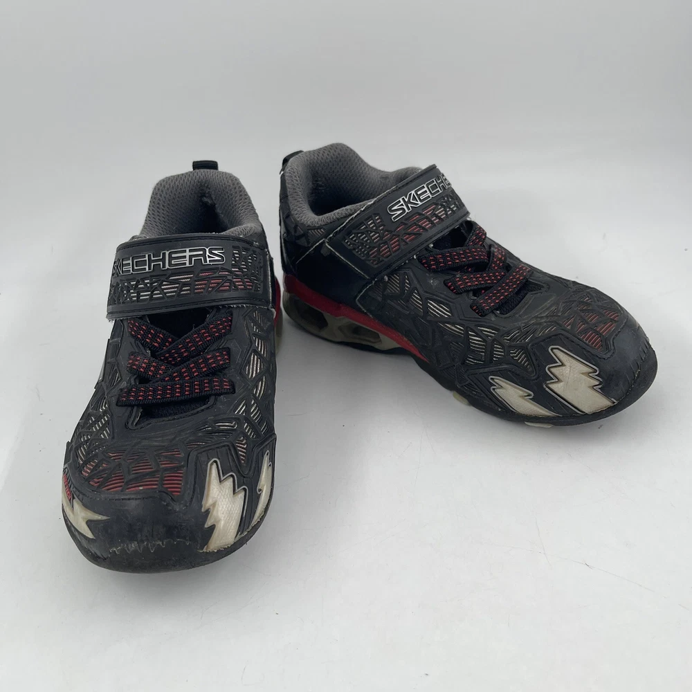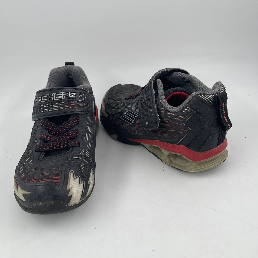 Very Good Preowned Condition Kids Size 12 C Skechers Boys S Lights: Hydro Lights Tuff Force Black Sneakers Please see photos for details of shoes NOTE: there is a rubbed spot on the collar part of the right shoe. Please see photo Normal wear on these with a few scratches. No holes, stains or tears. Also, the lights do not work. Rough & tumble active kids will love the playfully rugged Skechers S Lights: Hydro Lights - Tuff Force. This sporty Slip-on has a mesh fabric and durable synthetic upper. The lights no longer work. •Water repellant upper •Rugged durable design resists damage & is easy to clean •Mesh fabric with allover durable synthetic sculpted overlay •Cushioned comfort insole •Lightweight sculpted shock-absorbing midsole •Flexible traction outsole •Skechers logo detail Gently used. No original box Carefully packaged and box shipped same/next business day Please feel free to ask questions All items come from a smoke-free/pet friendly environment Please make sure to follow me. I list new inventory daily a SH3457/4PE-L05