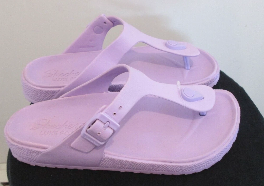 Lovely Lavender Skechers Luxe Foam Thong Sandals Women's size 10 Adjustable Strap Comes from a smoke free home.