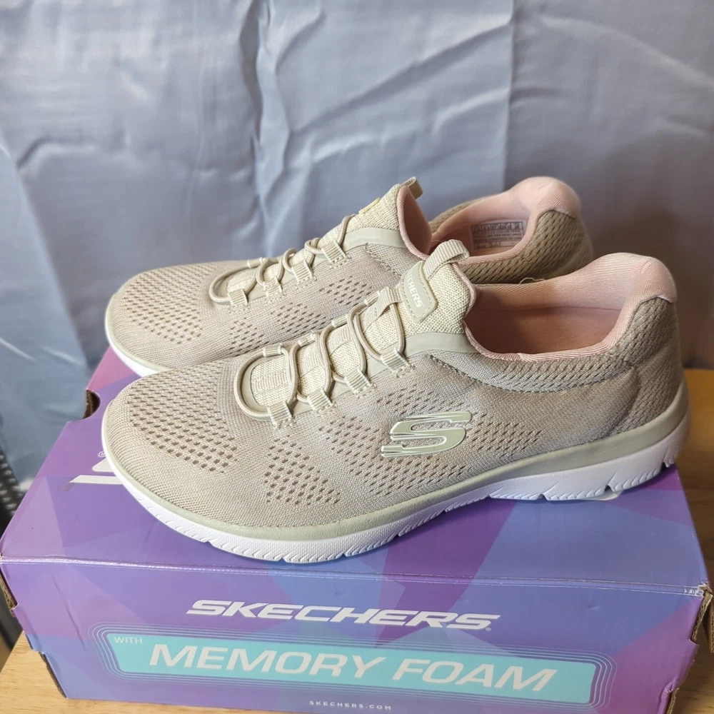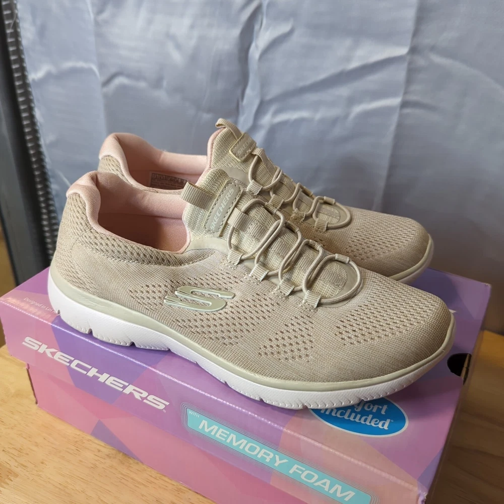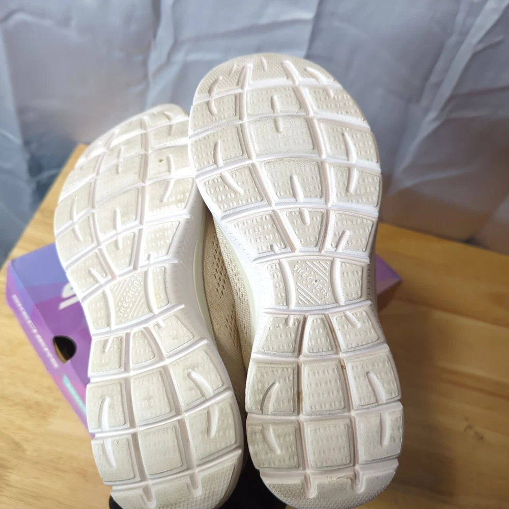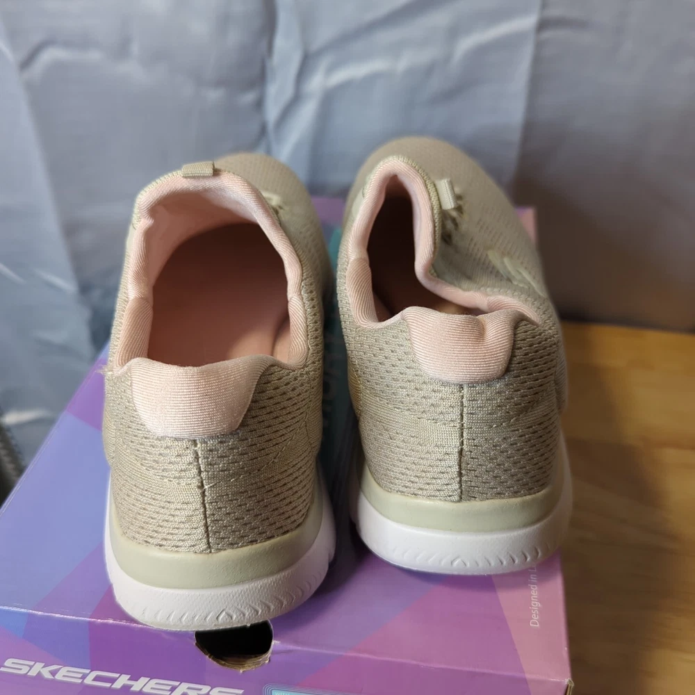 Women's Sketchers memory foam Slight wear on bottoms not too bad comes in box ! 7.5 light pink/nude