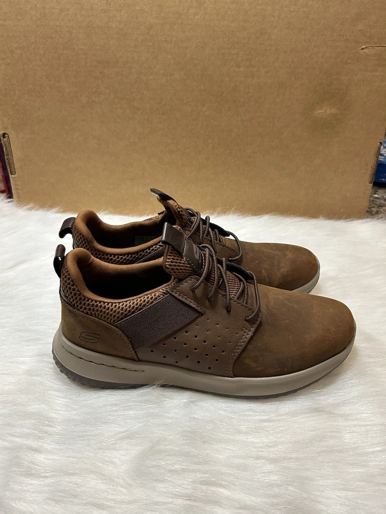 Skechers Mens Dark Brown Air Cooled Memory Foam Classic Fit Casual Shoes 8 Pre-owned, good condition
