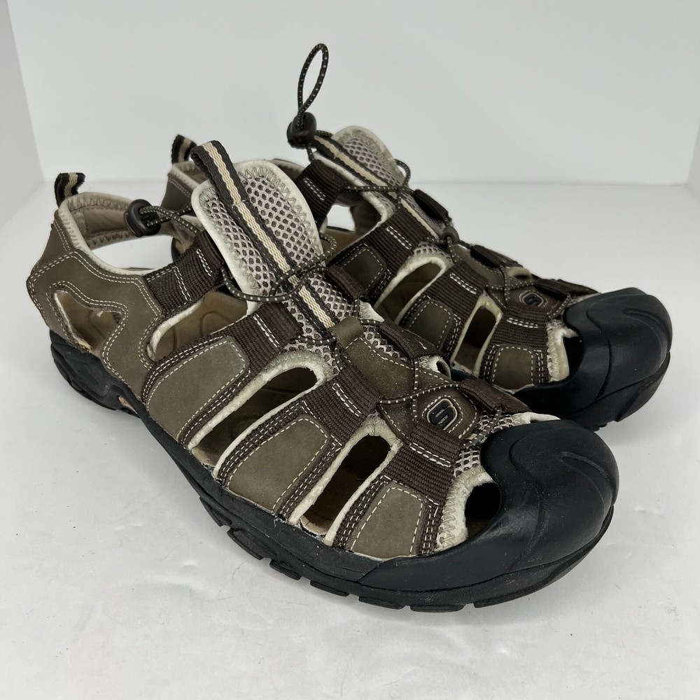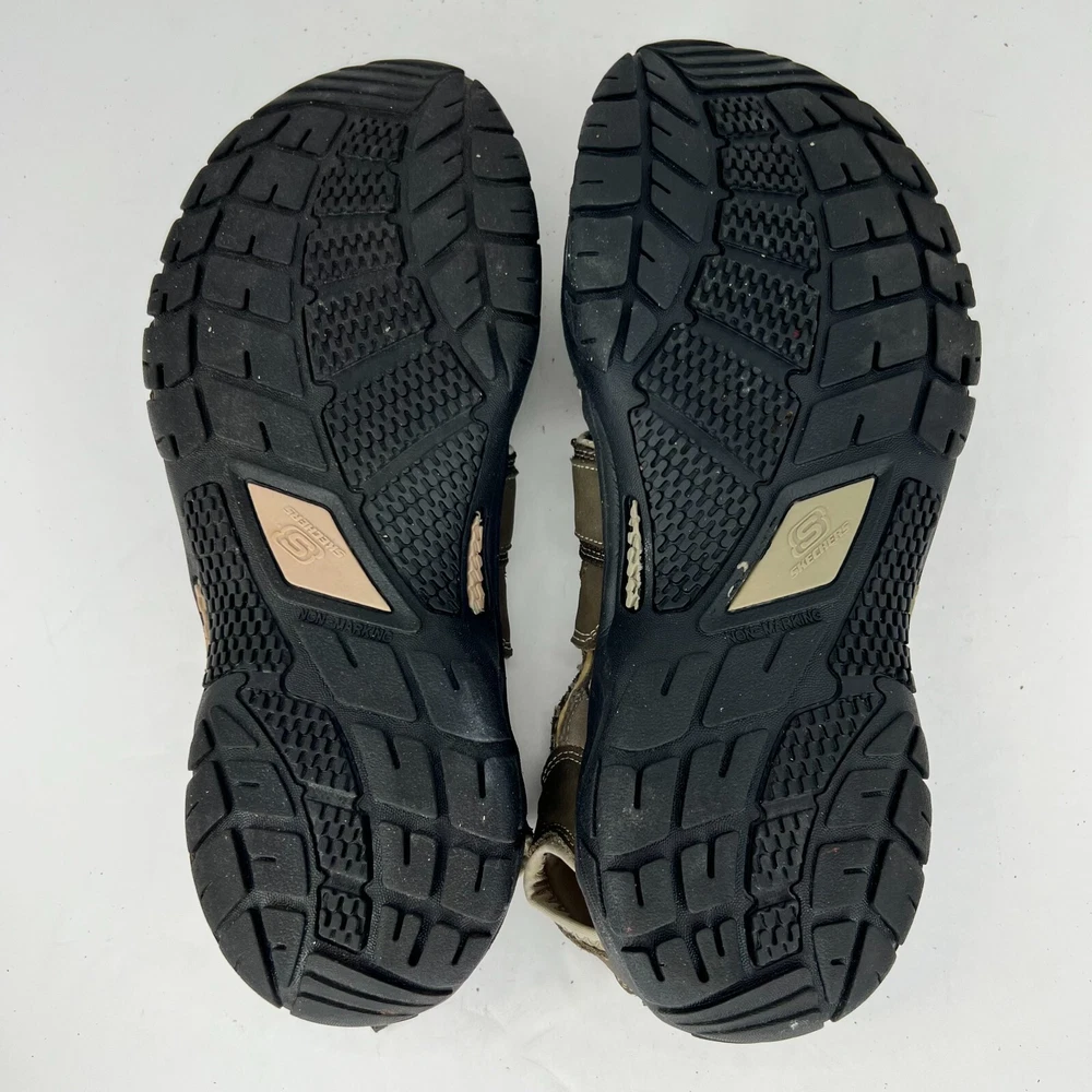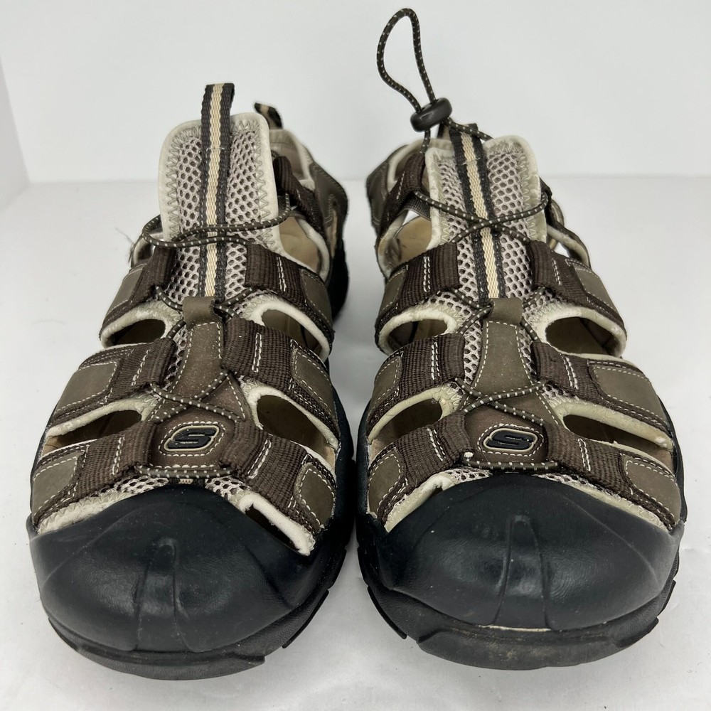 Elevate your summer footwear collection with these stylish Skechers Journeyman sandals. Crafted with waterproof leather upper and slip-on closure, these sandals are perfect for any outdoor activity. The bungee lace ensures a secure fit while the rubber outsole provides excellent traction on any surface. These sandals are available in size 12 and feature a solid brown color with synthetic lining material. The insole is made of foam and the outsole is made of rubber. Perfect for summer, fall, and spring, these Skechers Journeyman sandals are a must-have for any fashion-conscious man. 100% CUSTOMER SATISFACTION IS OUR GOAL! Our items are always carefully examined for condition, measured if necessary, and photographed in a climate controlled and smoke-free environment. We make every attempt to accurately describe and clearly picture the items we have for sale. Please, ALWAYS view all of the photos. We value your business and our goal is your complete satisfaction. FAST SHIPPING All items are packaged with care and shipped out the same or next business day via USPS, FEDEX, or UPS with tracking numbers so you are always informed. RETURNS We offer a 30-day return policy. All items must be unused and unopened in the condition in which they were received, with original packaging, and all accessories included for return. REVIEWS - CUSTOMER SATISFACTION - COMMUNICATION We aim to make you happy. After you receive your shipment, please leave a positive review . If you have concerns or questions about your order, please contact us so we can resolve the issue. We will do our best to make you satisfied. THANK YOU FOR YOUR BUSINESS!