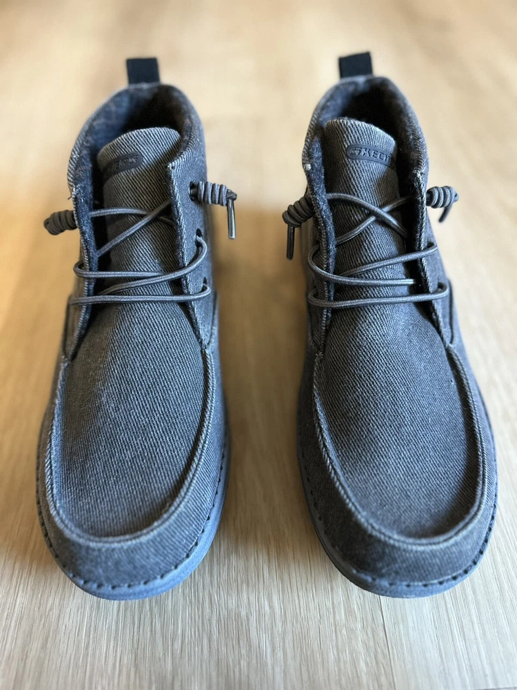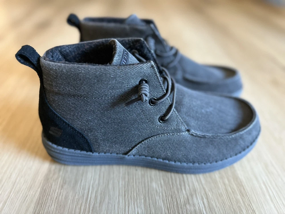 Enjoy maximum comfort with these Skechers Melson Chad Goga Mat Arch Relaxed Fit shoes. The blended fabric upper material and lining provide a soft touch, while the rubber outsole offers durable wear. These slip-on shoes are perfect for travel, activewear, and casual occasions. The Goga Mat Arch feature gives you an extra cushioned step, and the lightweight design makes them ideal for any season. The shoes are available in black and gray, in sizes 7.5 UK, 8.5 US, and 41.5 EU. The relaxed fit product line is perfect for outdoor enthusiasts who want to explore nature without sacrificing comfort.