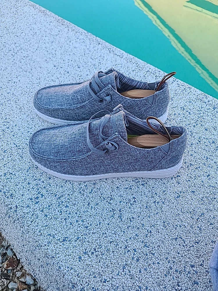 The Skechers Men's Relaxed Fit Melson Chad Slip-On Shoes are casual sneakers in a solid heathered gray color, featuring a slip-on closure for easy wear. They are designed with a Memory Foam insole for added comfort and a canvas upper material with fabric lining. These size 11.5 shoes from the Skechers Relaxed Fit product line offer a relaxed fit and are perfect for everyday casual wear. Excellent pre-owned condition. Cleaned & Inspected. Stored in AC pet smoke free facility. Packed and ready to ship. Thanks for shopping by. Offers & Questions are welcome.