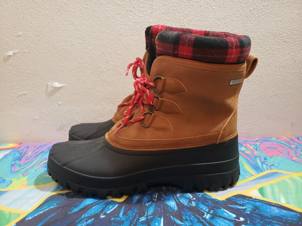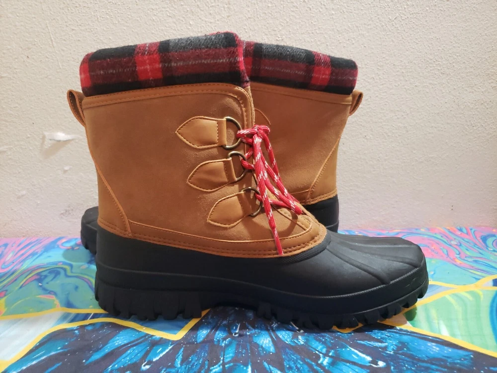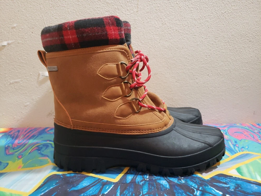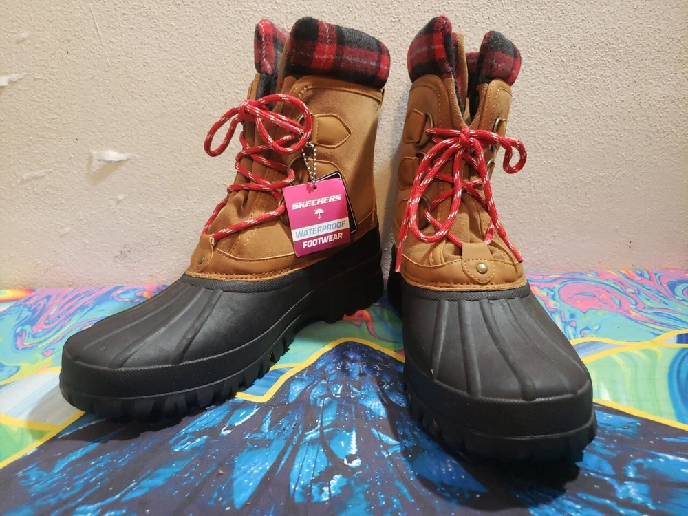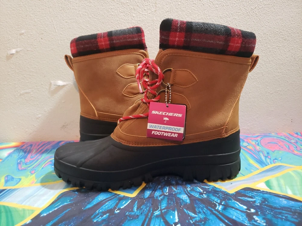BRAND NEW WITHOUT BOXES SKETCHERS WATERPROOF BOOTS COLD WEATHER FAUX FUR LINED 3M WATERPROOF TECHNOLOGY BLACK/BROWN PLAID ACCENT MENS SIZE 11 NEVER WORN BRAND NEW WITH TAGS I COMBINE SHIPPING ON ALL ITEMS