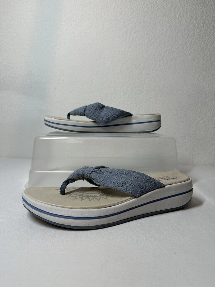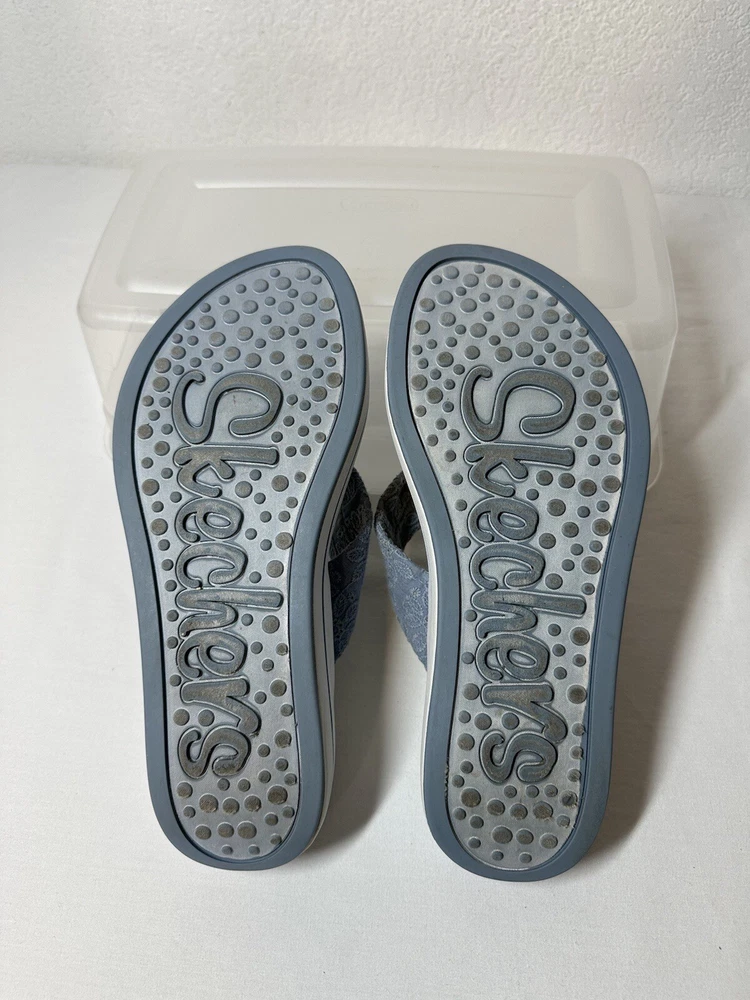 Skechers Relaxed Fit Memory Foam Womens Blue Embroidered Straps Sandals Size 9 Very Good Gently Used