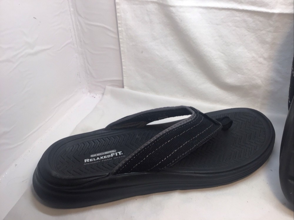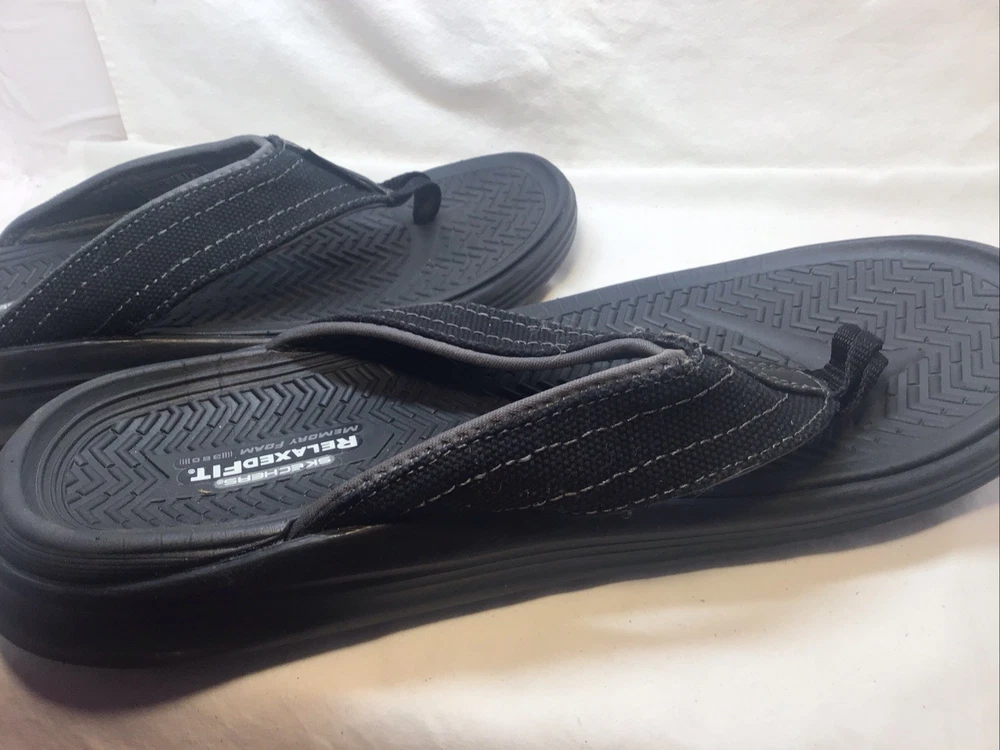 The Skechers Relaxed Fit Men’s Size 12 Black Memory Foam Thong Flip Flops Sandals are a stylish and comfortable choice for casual occasions. These sandals feature a solid black color with a logo accent, a rubber outsole, and memory foam insole for added comfort. The standard shoe width and synthetic upper material make them a practical choice for the summer, fall, and spring seasons. The Skechers brand and relaxed fit design provide a blend of style and relaxation for men looking for a versatile sandal option.