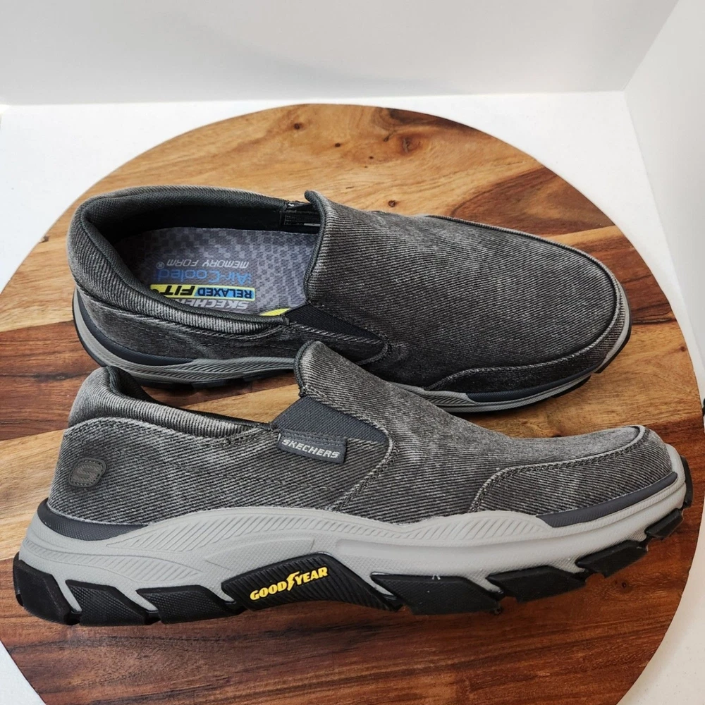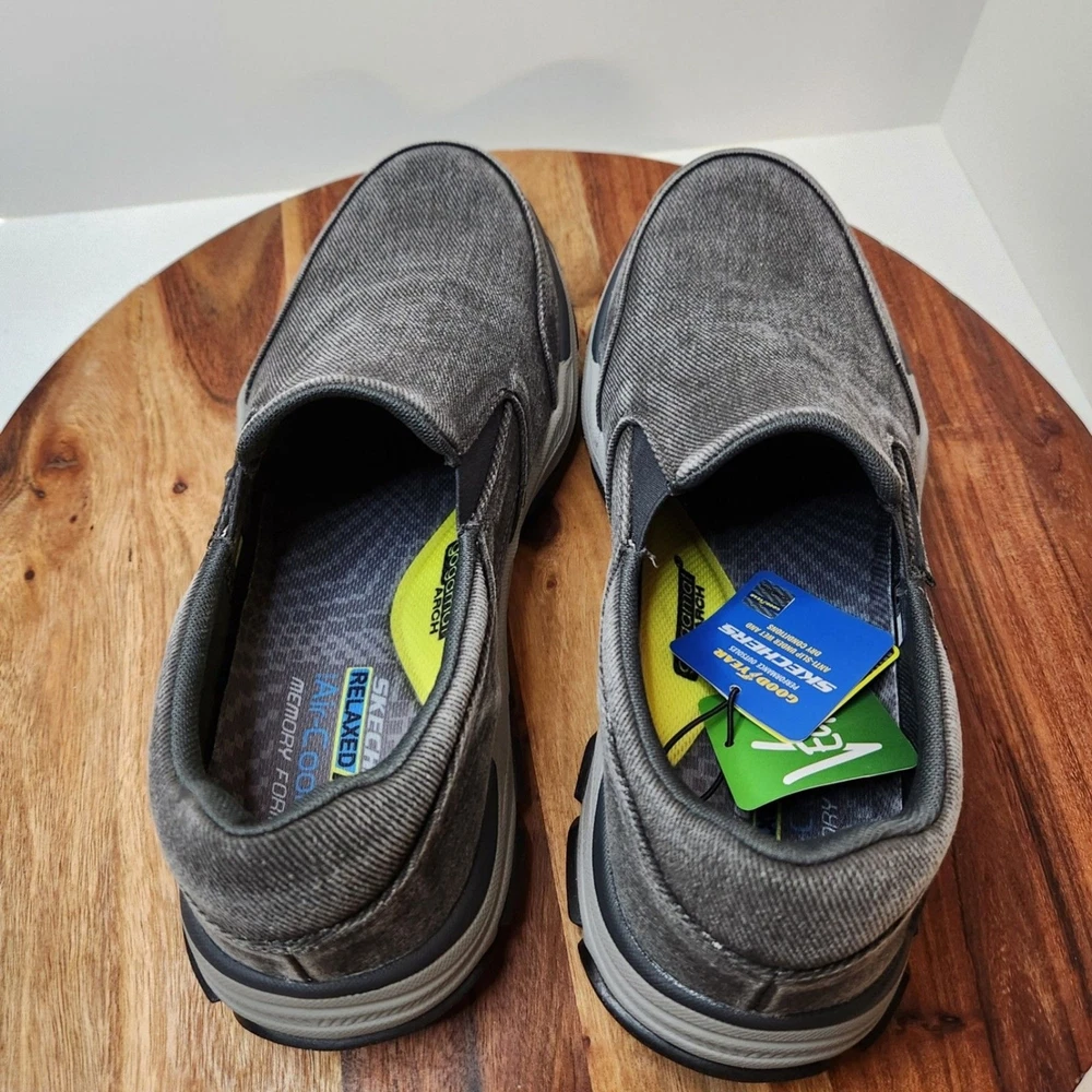 men's US size 12 Euro 46 Skechers relaxed fit Respected Fallston memory foam clean soles, with box please go by my typed description and photos - not auto fill for the most accurate descriptions - message me with any questions