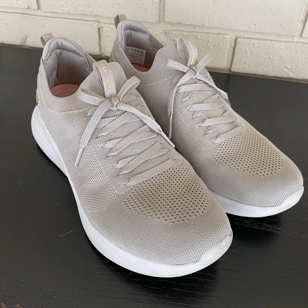 Upgrade your footwear collection with these Skechers Skech Lite Pro women's athletic shoes. Designed for comfort and performance, these sneakers feature arch support, cushioning, and a lightweight feel. The breathable, synthetic upper material and adjustable cap toe lace-up closure make them perfect for any occasion, whether it's for work, school, or casual wear. These beige sneakers have a solid pattern and are accented with the Skechers logo. They are suitable for gym training, walking, running, and jogging. The rubber outsole provides a sturdy grip, while the foam insole offers additional comfort. These low-top sneakers are perfect for the winter, summer, fall, and spring seasons.
