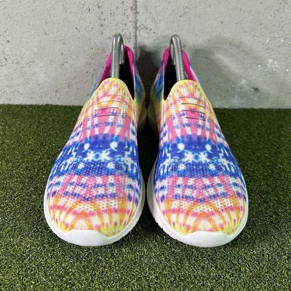 For sale is a pair of Skechers Ultra Flex Harmonious Tie Dye Slip On 13106 Shoes. Treads are in good condition. Only worn a few times. Please see pictures for all details. Women’s 9. Feel free to message me with any questions! R1S2 2.0