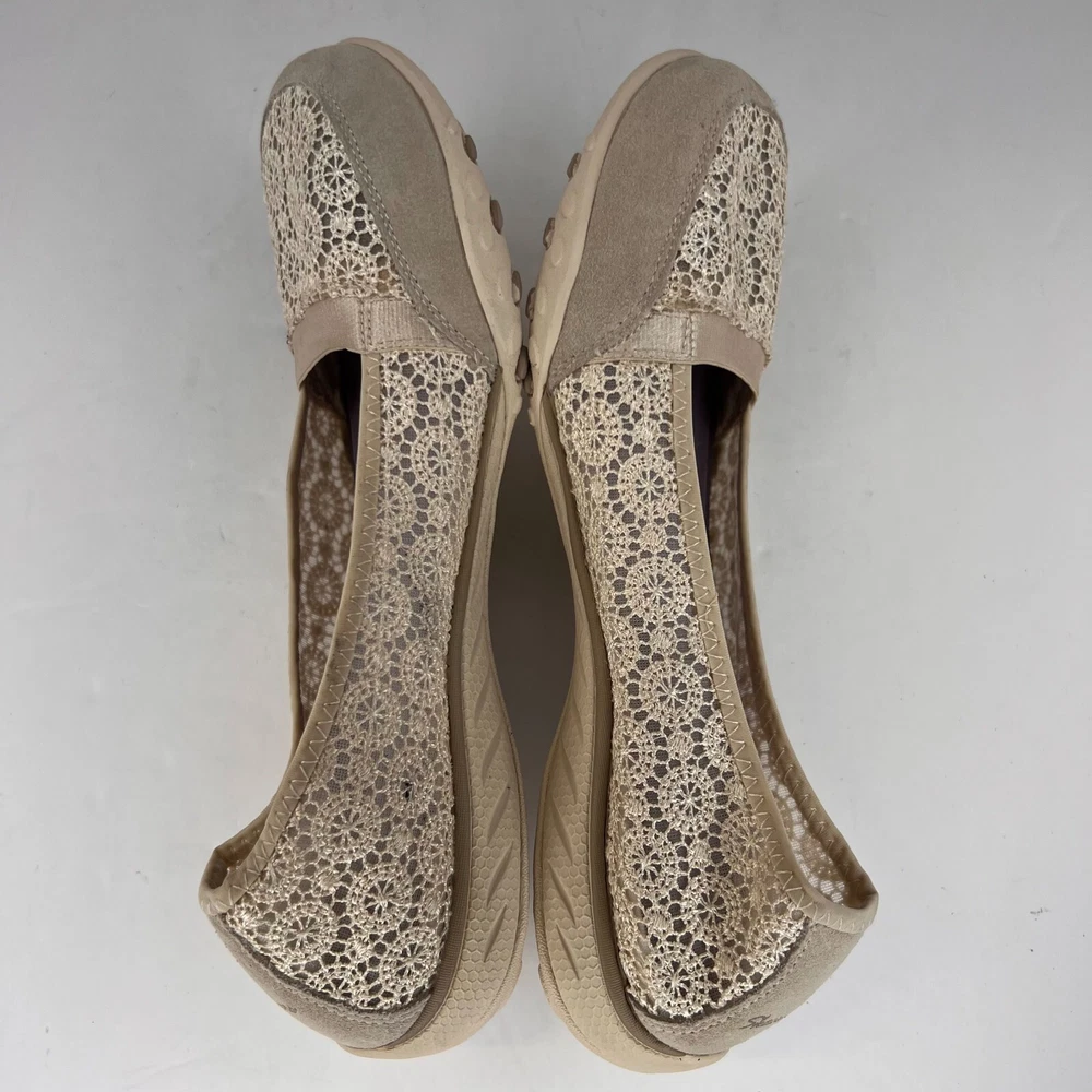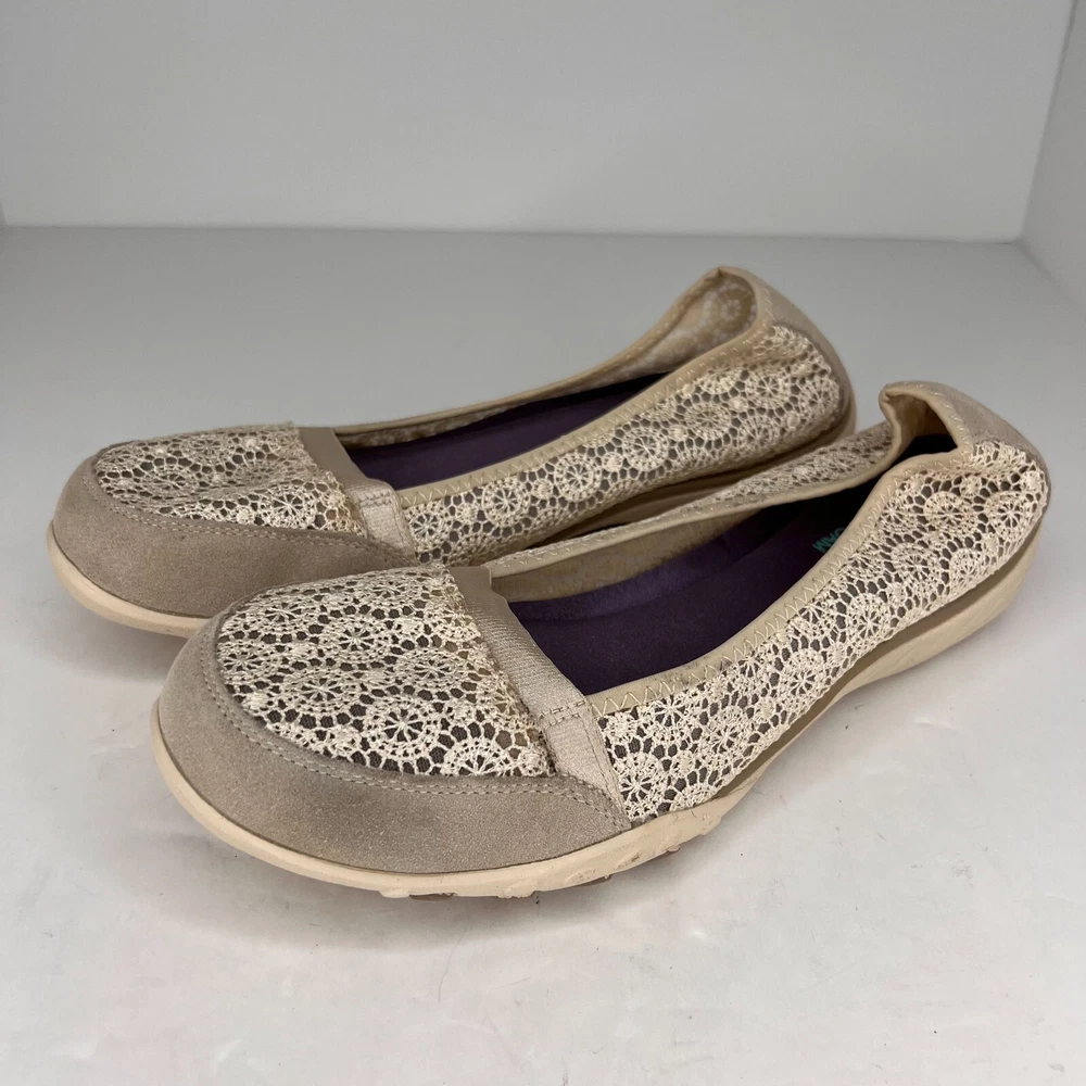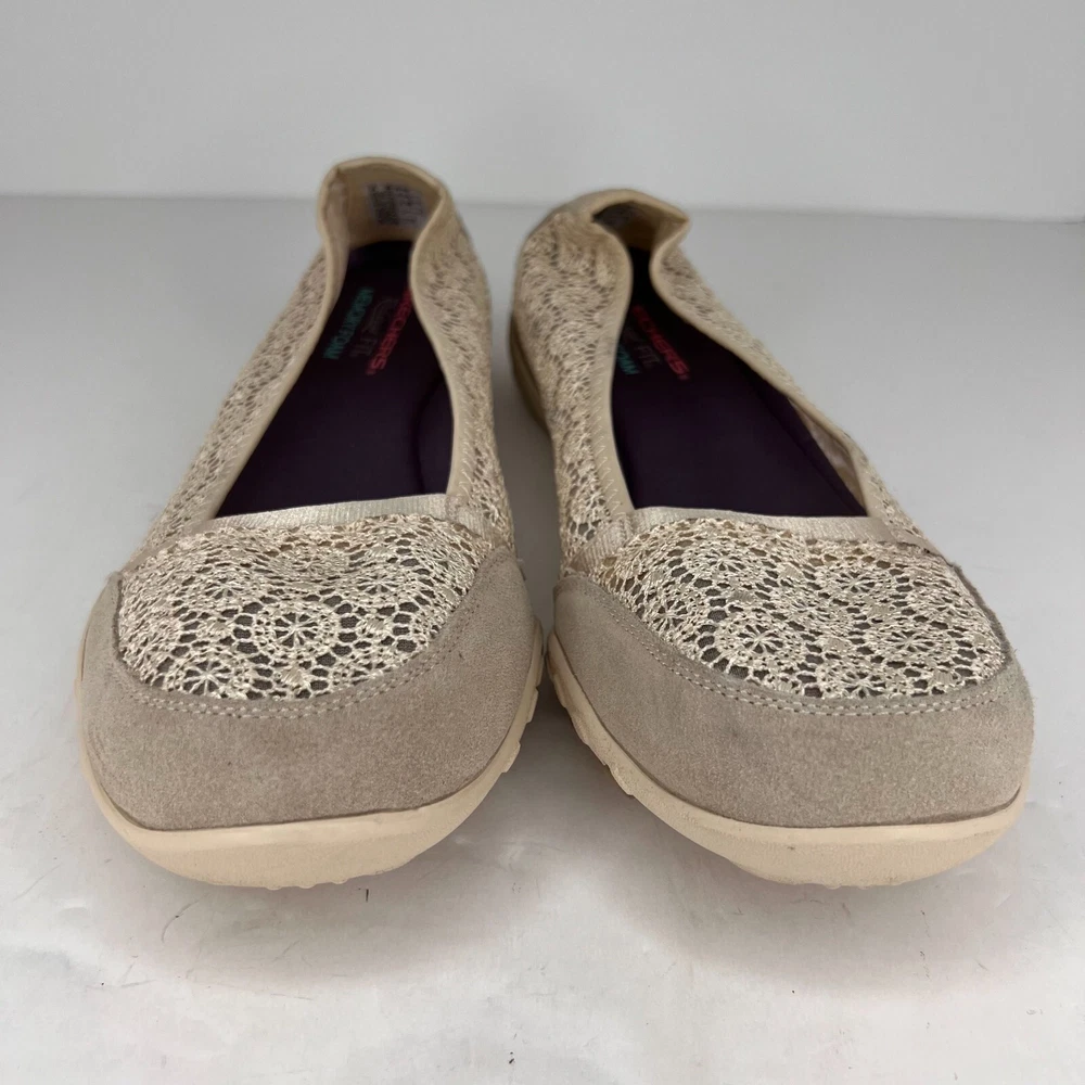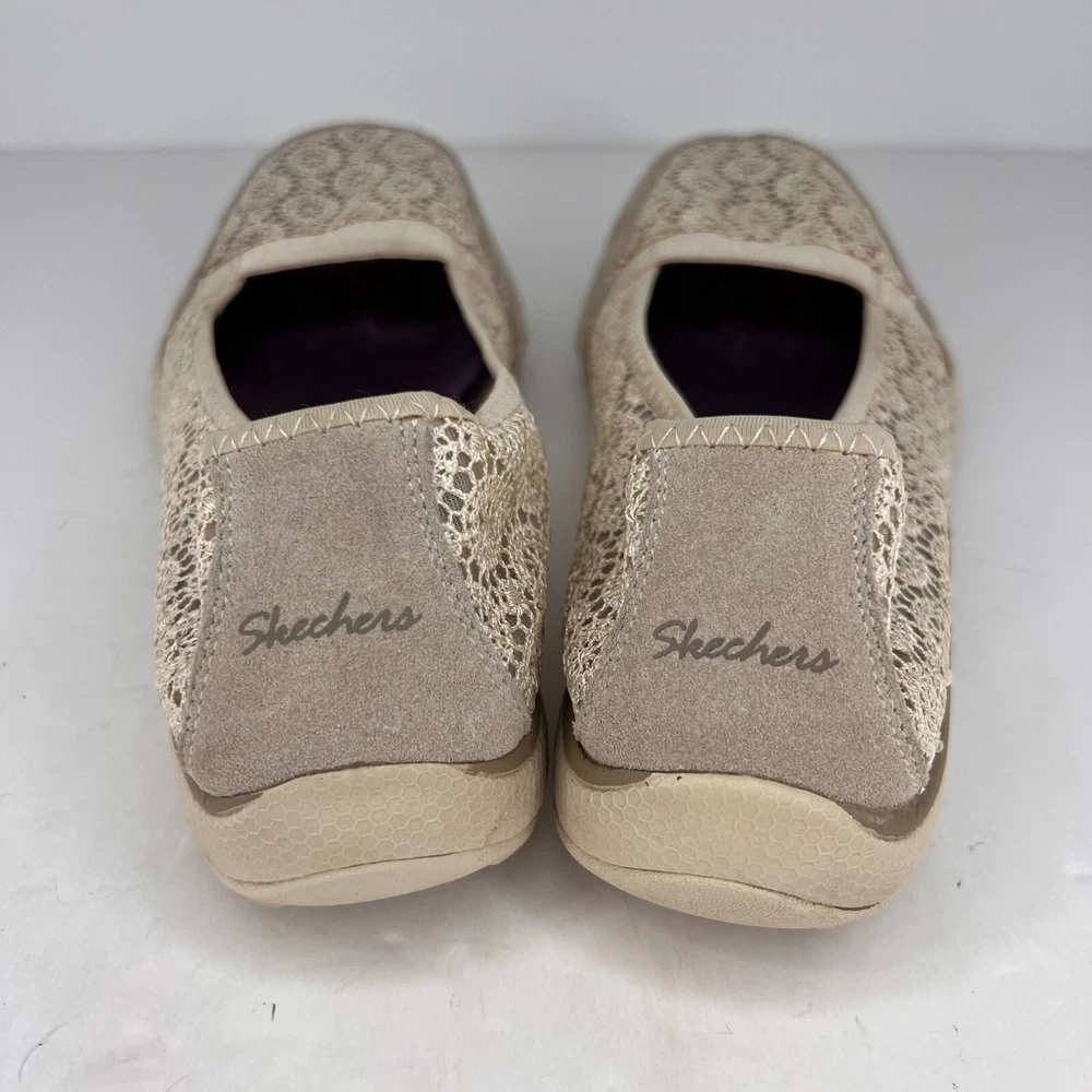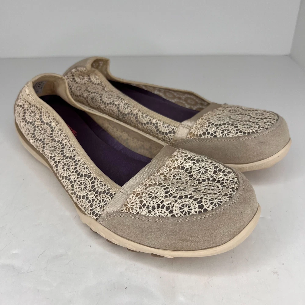 Elevate your style with these Skechers Breathe Easy slip-on shoes in a beautiful beige color. These shoes feature a round toe shape and a low top shoe shaft style. The upper material is made of mesh, while the lining material is made of fabric. The shoes have a standard shoe width and a foam insole material. These shoes are perfect for any season, whether it's winter, summer, fall, or spring. The outsole material is made of rubber, providing a durable and comfortable grip. The shoes are adorned with a Skechers logo accent, adding a touch of hipster, grunge, mom, classic, casual comfort, and preppy vibe to your outfit. These shoes are a must-have for any women's shoe collection. 100% CUSTOMER SATISFACTION IS OUR GOAL! Our items are always carefully examined for condition, measured if necessary, and photographed in a climate controlled and smoke-free environment. We make every attempt to accurately describe and clearly picture the items we have for sale. Please, ALWAYS view all of the photos. We value your business and our goal is your complete satisfaction. FAST SHIPPING All items are packaged with care and shipped out the same or next business day via USPS, FEDEX, or UPS with tracking numbers so you are always informed. RETURNS We offer a 30-day return policy. All items must be unused and unopened in the condition in which they were received, with original packaging, and all accessories included for return. REVIEWS - CUSTOMER SATISFACTION - COMMUNICATION We aim to make you happy. After you receive your shipment, please leave a positive review . If you have concerns or questions about your order, please contact us so we can resolve the issue. We will do our best to make you satisfied. THANK YOU FOR YOUR BUSINESS!