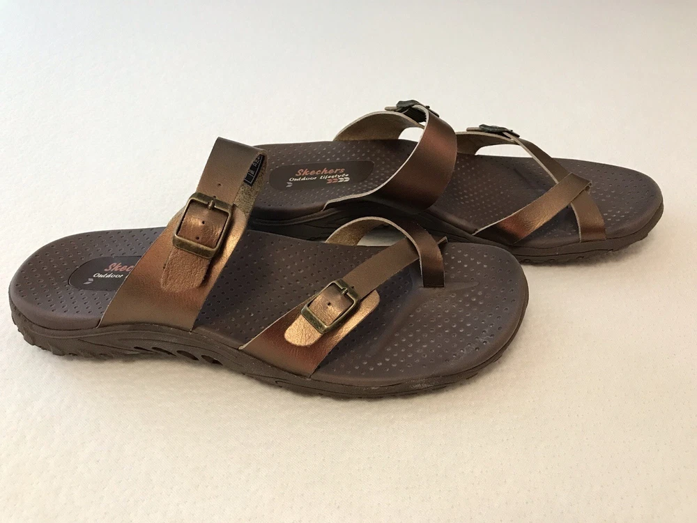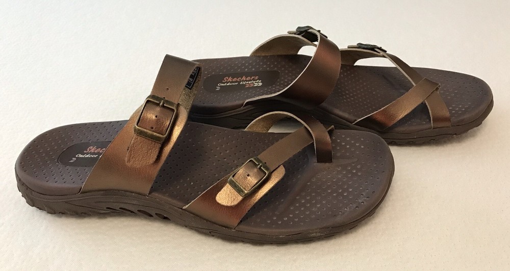 Skechers Women's Bronze Brown Slide On Sandals for Outdoor Comfort Size 10