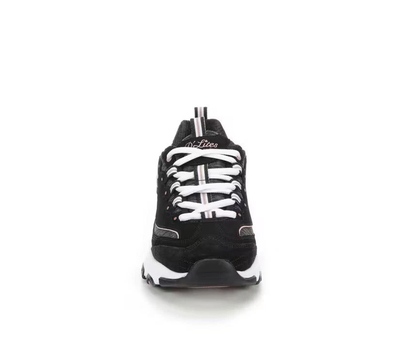 Rock the newest trend wearing the Skechers® Me Time 11936! These durable sneakers have stylish stud and rhinestone accents at the laces and tongue to add subtle sparkle into your day. The chunky outsoles create a fun retro 90s vibe, while providing solid comfort with an Air-Cooled Memory Foam™ cushioned comfort insole, lightweight shock absorbing supportive midsole, and a flexible rubber traction outsole. Add the Skechers® Me Time 11936 to your cart today and start walking in stylish comfort! Durable upper Lace-up sporty athletic training and walking sneaker design Air-Cooled Memory Foam™ cushioned comfort insole Lightweight shock absorbing supportive midsole Flexible rubber traction outsole Soft fabric shoe lining Padded collar and tongue Fabric strap at heel and tongue Fun sparkle accents Skechers® branding details
