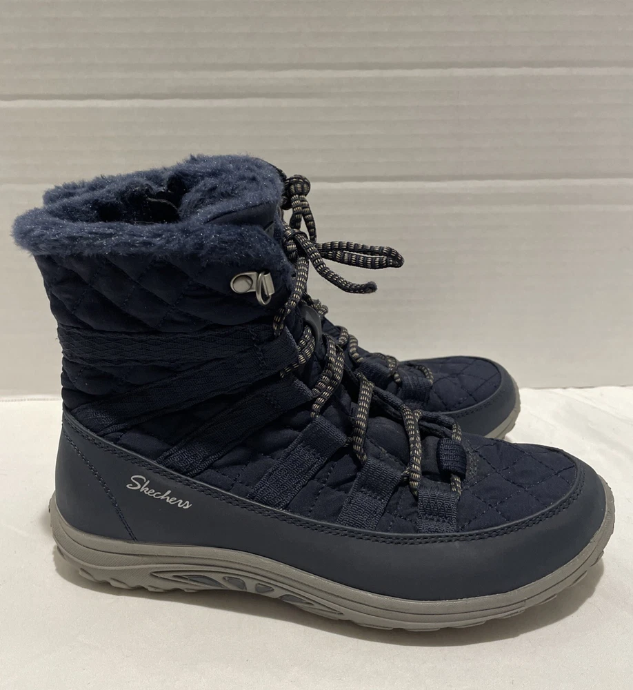Step out in style and comfort with these Skechers Women's Quilted Side-Zip Air Cooled Memory Foam Boots in Blue. These boots feature a mid-calf shaft style and a flat heel height, making them perfect for outdoor and casual occasions. The side zip and lace-up closure provide a secure fit, while the rubber outsole material offers durability and traction. The boots are made of nylon upper material and faux fur lining material, with a foam insole material for added comfort. They also come with features like relaxed fit, cushioning, lightweight design, and air cooling. The Skechers Reggae Fest Moro Rock model is perfect for women who want to add a touch of style to their wardrobe.