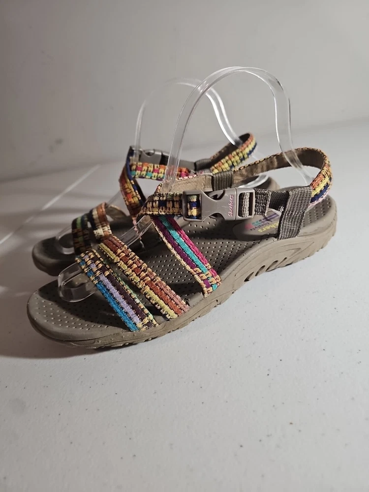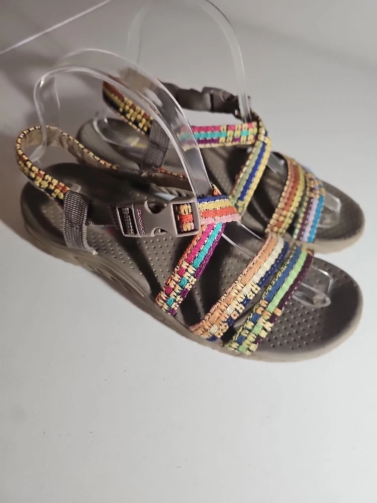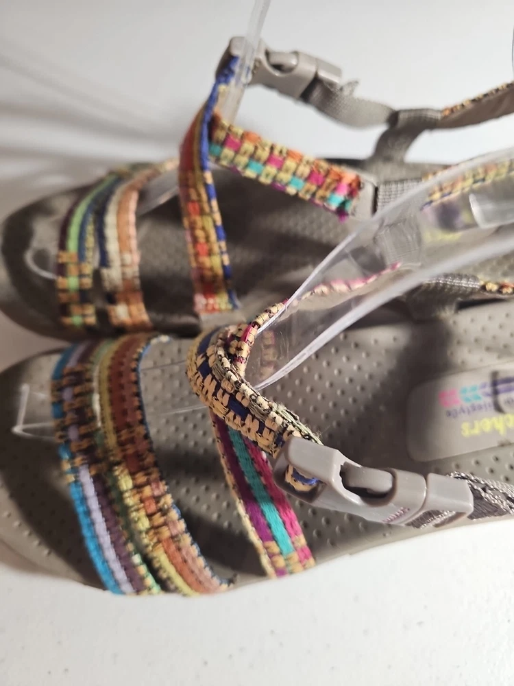 The Skechers Women's Reggae-Sew Me Sandal in Taupe Multi is a comfortable and stylish choice for casual wear. Featuring a woven fabric upper with stitching accents, this strappy sandal has a buckle/strap closure for an adjustable fit. The flat heel style and cushioned footbed offer all-day comfort, making it ideal for everyday activities. The sandal is part of the Skechers Reggae product line and is designed for women in size 7 US (37 EU) with a medium width. Comes from my clean, non-smoking home to yours with love;). These do show some signs of wear, but they have ALOT of wear and adventure left in them;) I will ship this using ground advantage. If you would like to upgrade to Priority shipping, please let me know and I will change the setting to allow you to upgrade. I do my best to do next business day shipping. I dont ship on Saturdays, sorry;). Thank you for looking;).