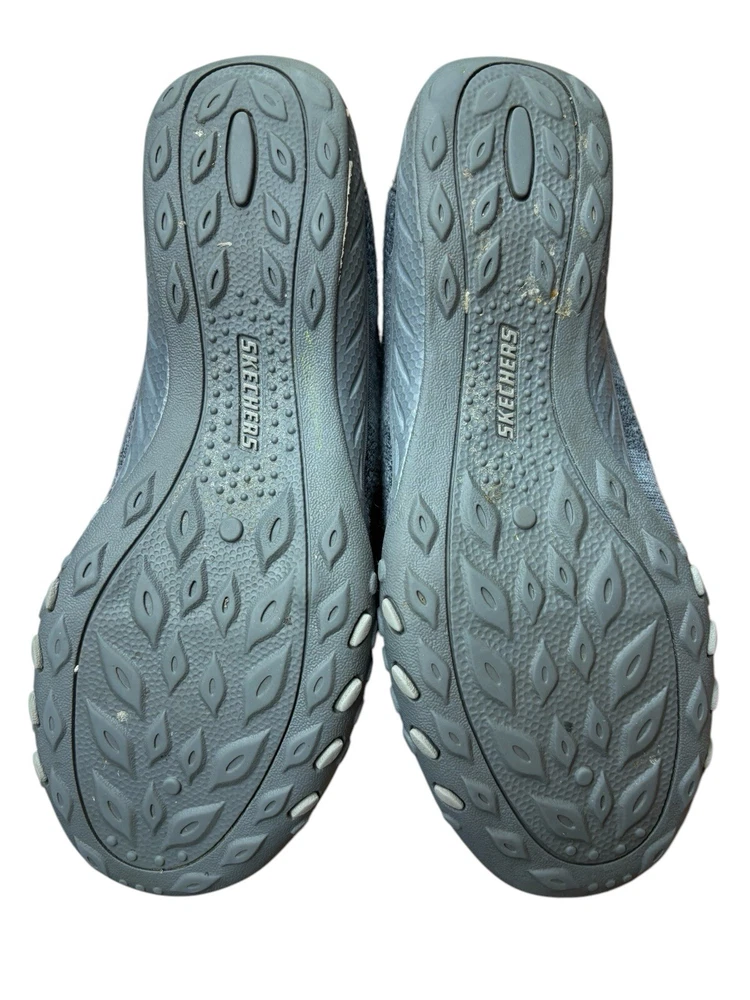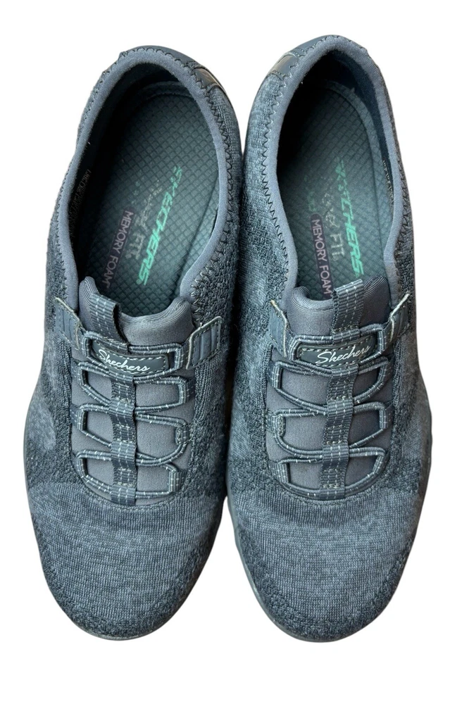 These Skechers Women's Slip-On Sneakers in size 7 feature a stylish gray color with a solid pattern and the brand's signature logo accents. They are designed for casual and activewear occasions, with a comfortable Memory Foam insole and Relaxed Air Cool technology for long-lasting comfort. The slip-on style and standard shoe width make them easy to wear, while the rubber outsole provides traction for walking activities. Ideal for women looking for a versatile and trendy athletic shoe option.
