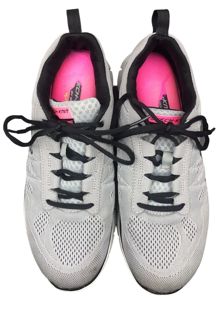 Step up your shoe game with these Skechers Skech-Knit sneakers in gray and pink. These athletic shoes are perfect for any occasion, whether you're heading to the gym or just running errands. The lace-up closure ensures a secure fit, while the flex sole provides maximum comfort and cushioning. Featuring logo accents, these shoes are both colorful and stylish. The synthetic upper material and fabric lining make these shoes durable and perfect for all seasons. Available in size 8.5 US / 5.5 UK / 38.5 EU, these Skechers Skech-Knit sneakers are a must-have for any sneaker enthusiast.