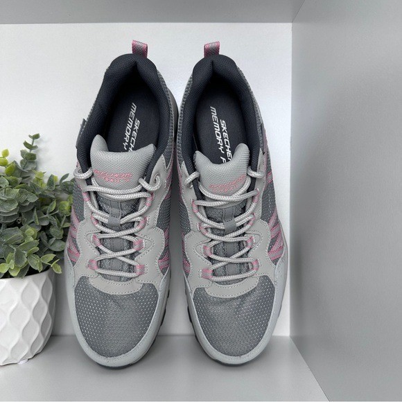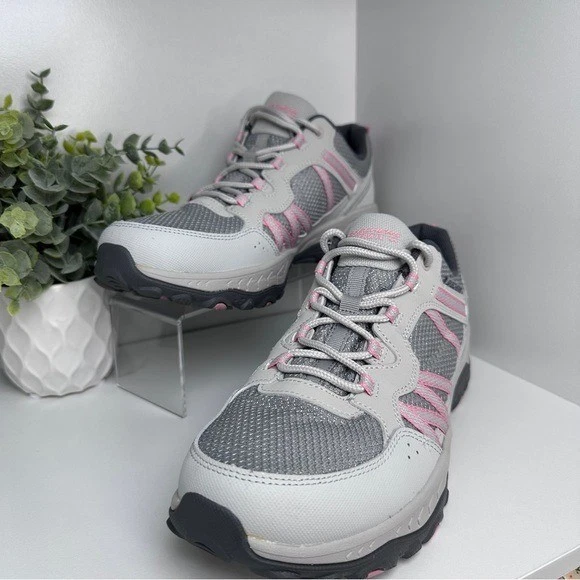Skechers Women’s Trail Gray Hiking Lace Up Sneakers Shoes Size 10 SIZE: 10 COLOR: Gray MATERIAL: Blended Material CONDITION: Good used condition, no flaws, please see all the pictures. Professionally cleaned and sanitized with signs of wear, please see all the pictures. The item shown is the exact item you will receive. Step out in style with these chic leopard print loafers. Perfect for adding a bold touch to any outfit. Step into comfort and style with these women's athletic shoes. Featuring a sleek gray design with pink accents, these shoes are perfect for any casual outing or workout session.