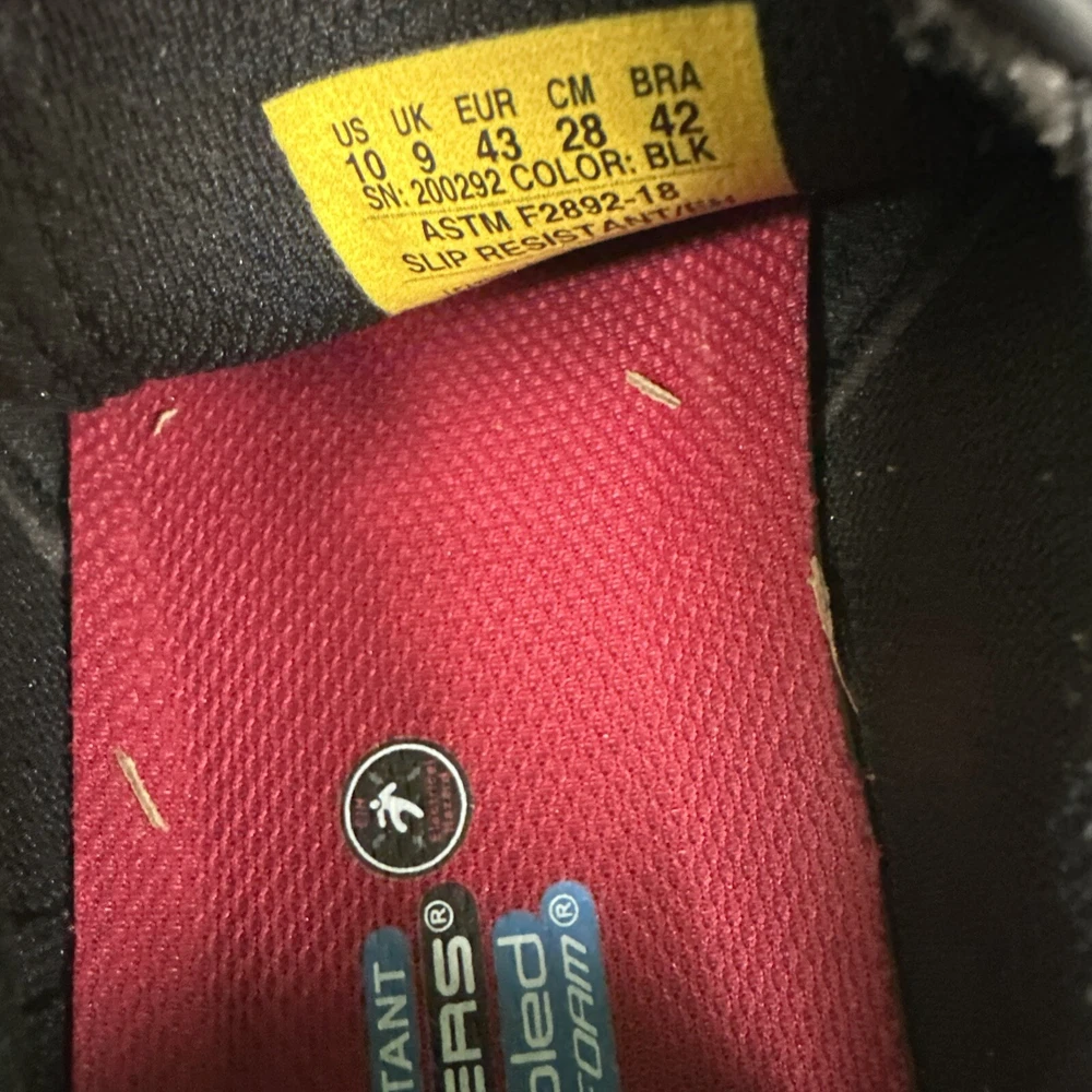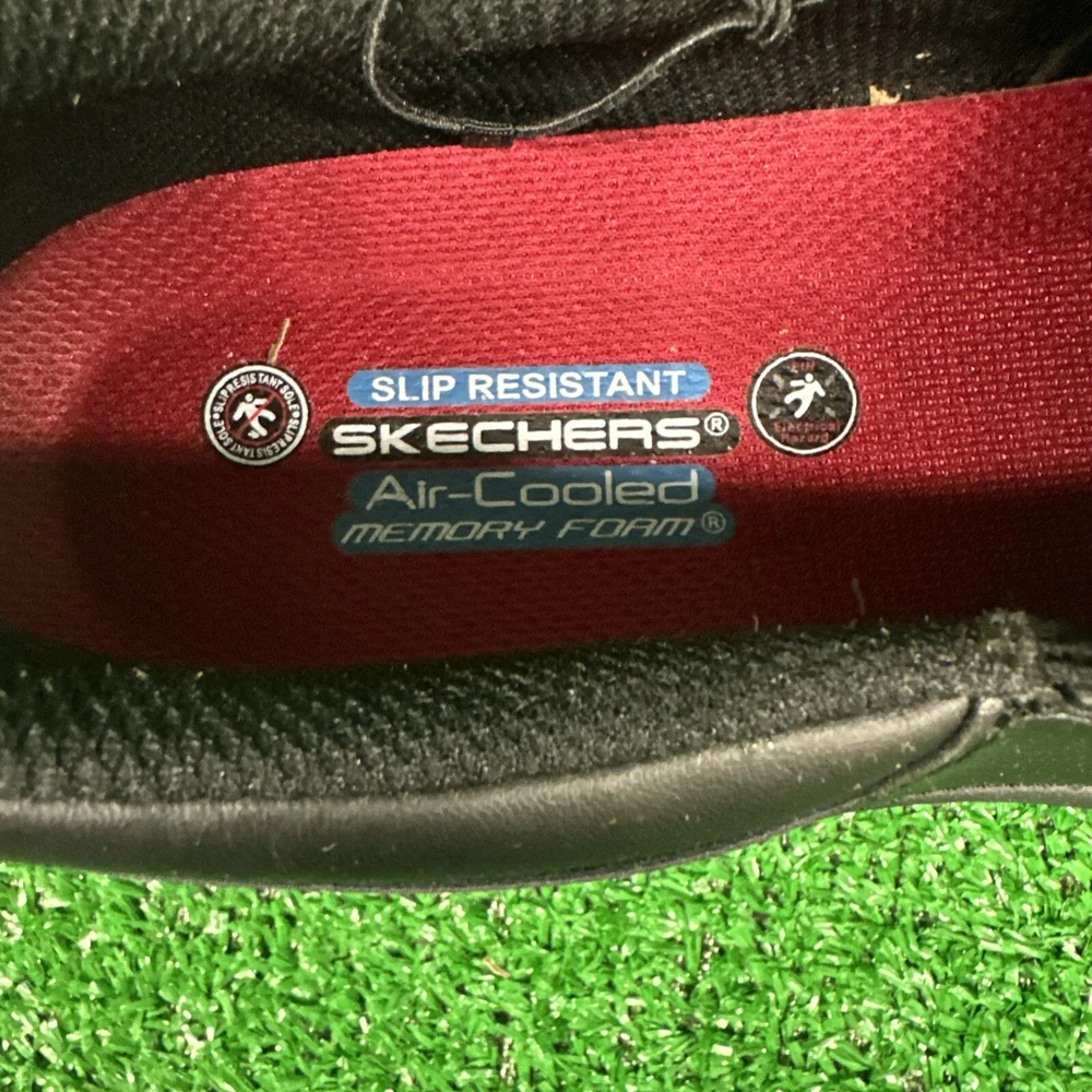 This is a pair of men's Skechers slip-on casual shoes in black, featuring the Rockrath model from the Skechers Relaxed Fit product line. The shoes are designed to be slip-resistant and have a synthetic upper material. They are in US shoe size 10 and are ideal for work environments requiring slip-resistant footwear. SKU- E3 Date- 02/05/25 Listed by-LM Condition- NWB Shade/size- 10/ black Inspected to the best of our abilities and looks to be in good condition. **Item has sticker for SKU purposes**