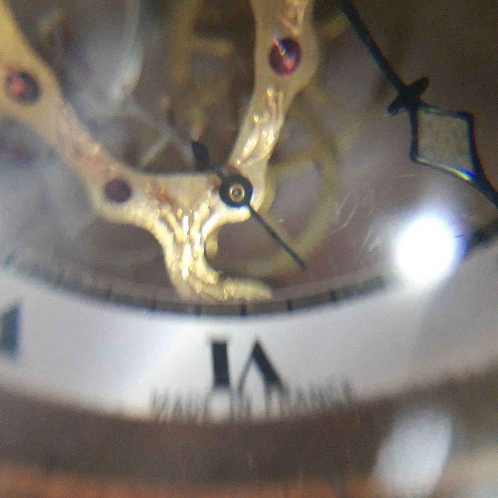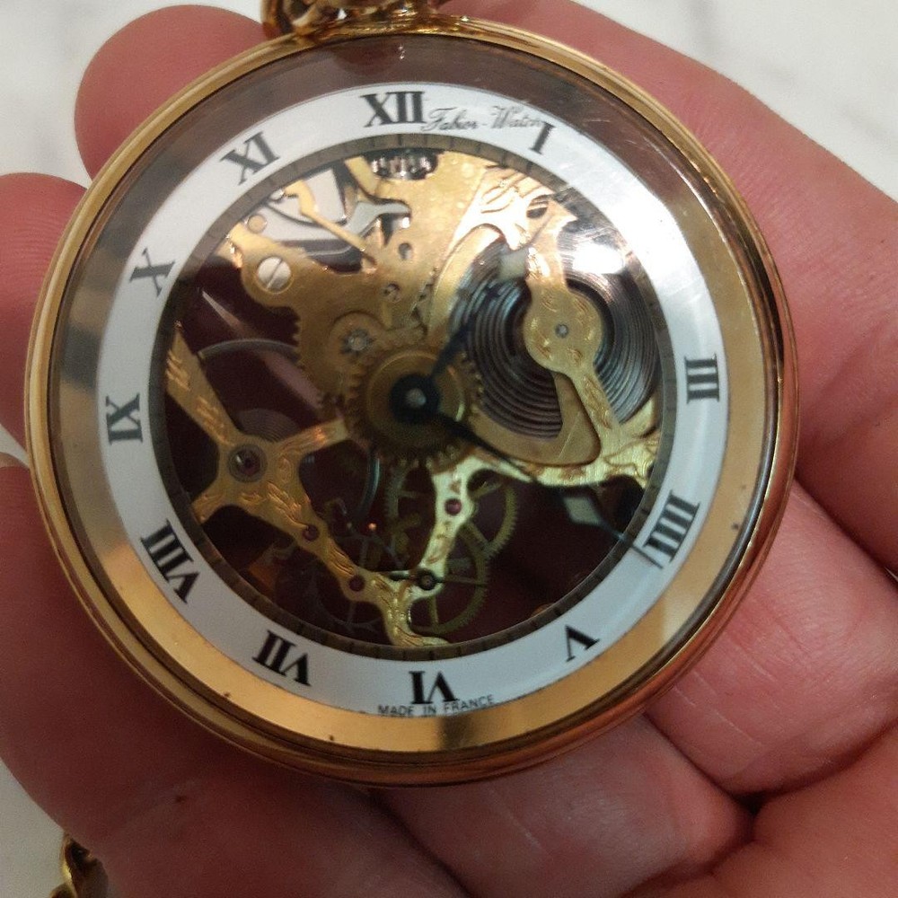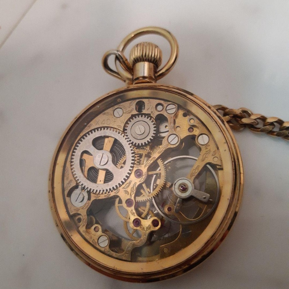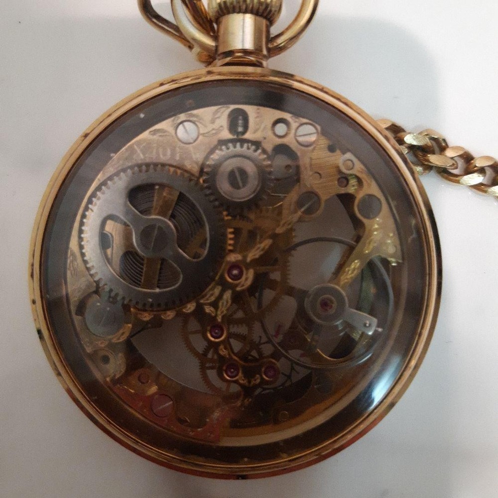 This skeleton pocket watch has a unique vintage charm with its visible gears and intricate design. The as-is condition adds to its nostalgic appeal, perfect for collectors who appreciate retro style. While it may not be flawless, the craftsmanship still shines, making it a great conversation piece. Just be aware it might need some TLC—ideal for those who love a bit of history on their wrist!