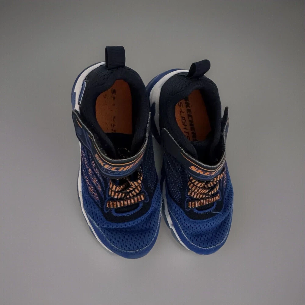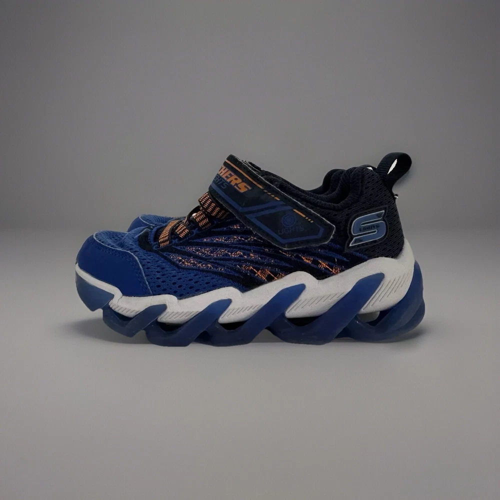 Toe Shape: Round Toe Character: Blue Accents: Logo Type: Athletic Handmade: No Brand: SKECHERS Model: Mega Surge Occasion: Casual, Activewear, Travel EU Shoe Size: 27.5 Features: Comfort, Lightweight, Arch Support, Ankle Strap, Adjustable Strap, Cushioned, LED Closure: Hook & Loop Performance/Activity: School, Walking, Running & Jogging, Gym & Training, Dance, Cross Training Shoe Width: Standard Pattern: Striped US Shoe Size: 11 Color: Blue Shoe Shaft Style: Low Top Season: Spring, Summer, Fall Style: Sneaker Insole Material: Synthetic Customized: No Vintage: Yes Theme: Light Up Lining Material: Synthetic Product Line: S-Light Upper Material: Synthetic Outsole Material: Rubber Department: Boys Cushioning Level: Moderate UK Shoe Size: 10 Personalize: No