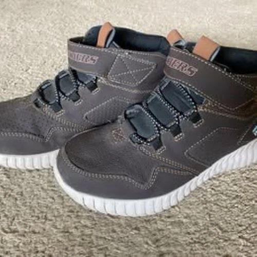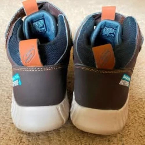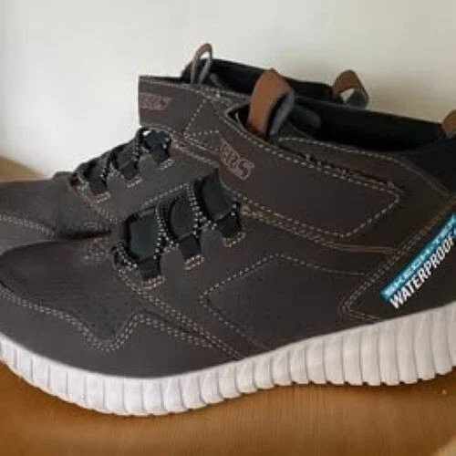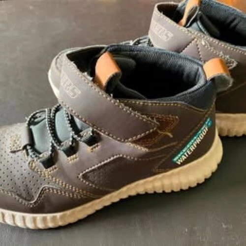 Style: Sneaker Color: Brown Seller Notes: “Pre owned but used just once.” Character: Boy Performance/Activity: Hiking, School, Walking Department: Boys Type: Athletic US Shoe Size: 4 Features: Waterproof Season: Fall, Spring, Summer Brand: SKECHERS