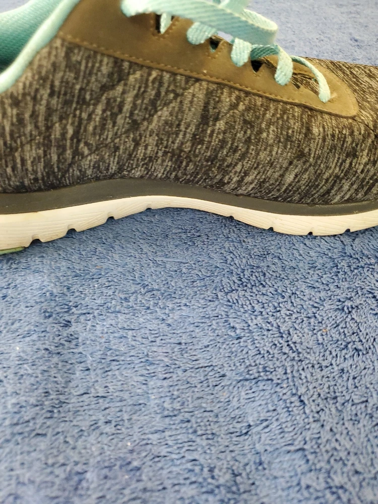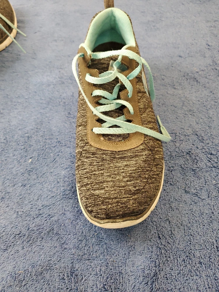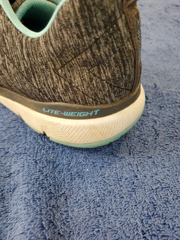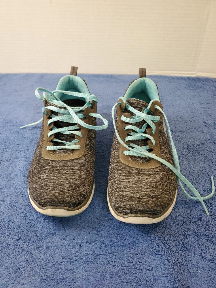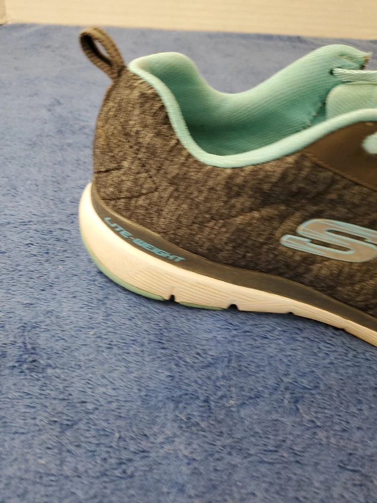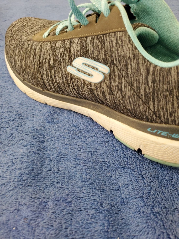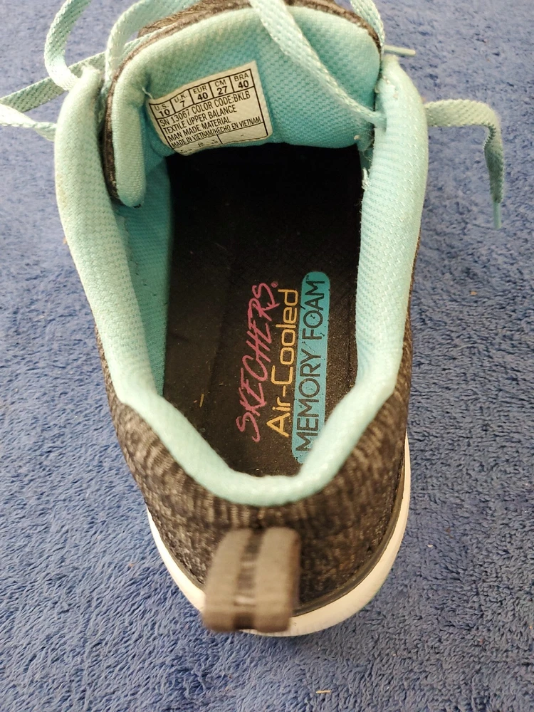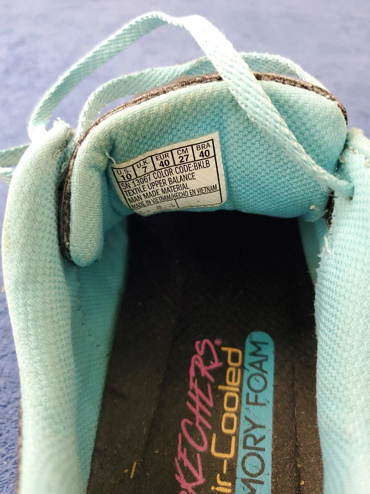 Sketchers Women Lite Weight Air Cooled Memory Foam Black Teal Athletic Shoe 10. Very good condition. Please see pictures. WILL SHIP IN A STURDY BOX. WE WILL COMBINE SHIPPING ON MULTIPLE ITEMS IF POSSIBLE. PLEASE CHECK OUT OUR OTHER ITEMS. THANKS FOR LOOKING.