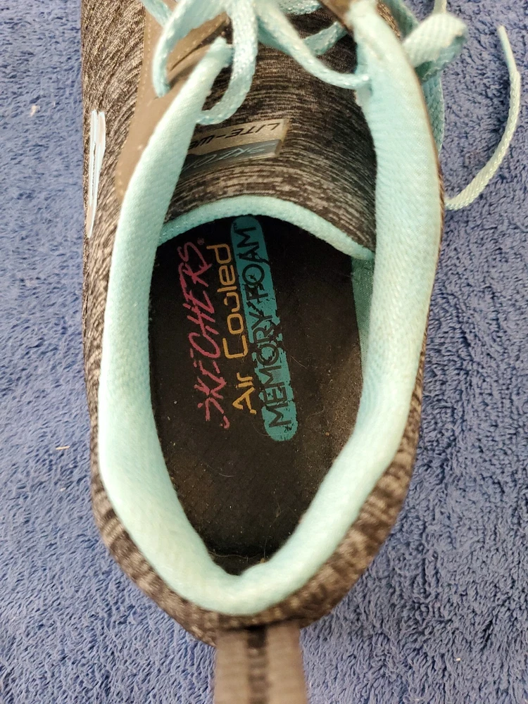 Sketchers Women Lite Weight Air Cooled Memory Foam Black Teal Athletic Shoe 10