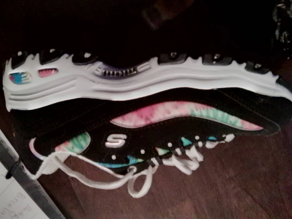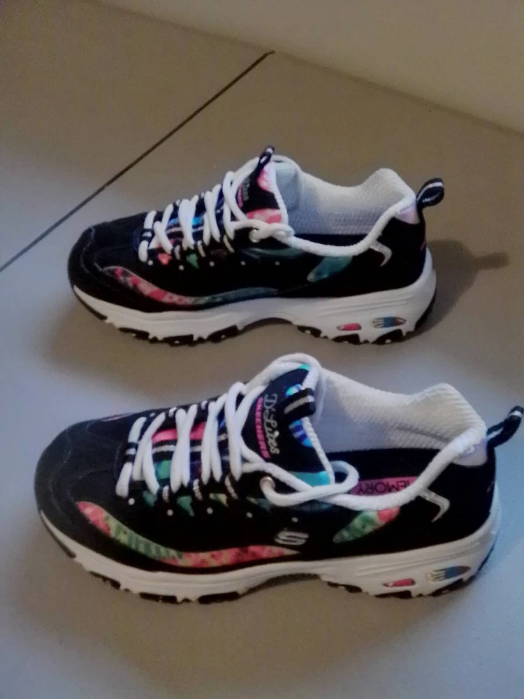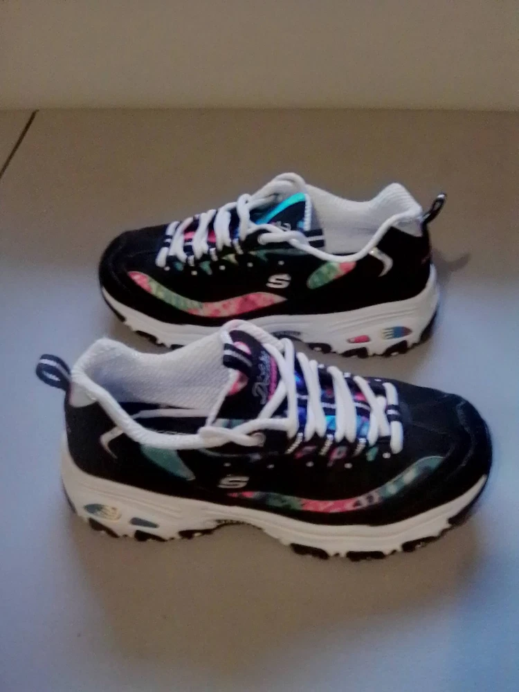 Step into a blend of comfort and vibrant style with Skechers Women’s D’Lites Summer Fiesta Athletic Sneakers. Ideal for the woman on the go, these size 7 sneakers are designed to keep your feet supported through any activity, from cycling to CrossFit. The durable synthetic upper, combined with a cozy fabric lining and insole, ensures your feet stay comfortable all day long. These low-top sneakers feature a practical drawstring closure for a secure fit and are crafted with a versatile blended fabric that's perfect for the summer season. The colorful multicolored pattern adds a bright accent to your activewear or workwear, while the sturdy rubber outsole provides reliable traction. Whether you're cross-training or simply enjoying a casual day out, these Skechers D'Lites offer both functionality and a cheerful touch to your ensemble.