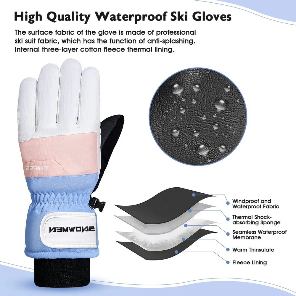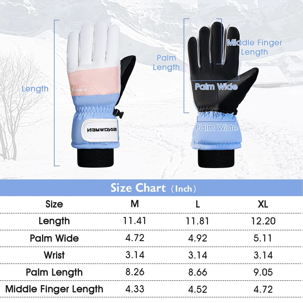 【Waterproof Winter Gloves】The snowboard gloves is made of carefully selected 100% polyester and the outer with waterproof material which effectively blocks the entry of water, suitable for winter outdoor skiing, snowball fights, climbing, work, etc. 【No-slip & Touch Screen Design】The palm of the cold weather gloves is made of PU non-slip fabric, which is soft and comfortable to ensure that your fingers are flexible in this snow gloves and let you firmly grip things. Touchscreen finger design which make you can effectively use your phone, smart watch and others without taking off the gloves. 【Adjustable & Prevent Loss Design】Adjustable straps and pull strings are useful for keeping snow out, you can tight it as much as you want. Card zipper pocket to carry your key card, ski pass and other small valuables. Anti-fall Hook to connect the gloves and prevent lost. 【Warm & Durable】Thicken fleeced lined can resist temperature from -22°F to -4°F, keep your hands warm. And the durable thermal gloves with strong and neat alignment can be used for a longer time. 【Occasion】Winter warm glove for women is suit for skiing, snowboarding, sledding, shoveling, playing the snow, motorcycle, cycling, mountain climbing and other outdoor occasions. This motorcycle gloves can to protect themselves from the cold during cold weather. Hand Wash recommended.