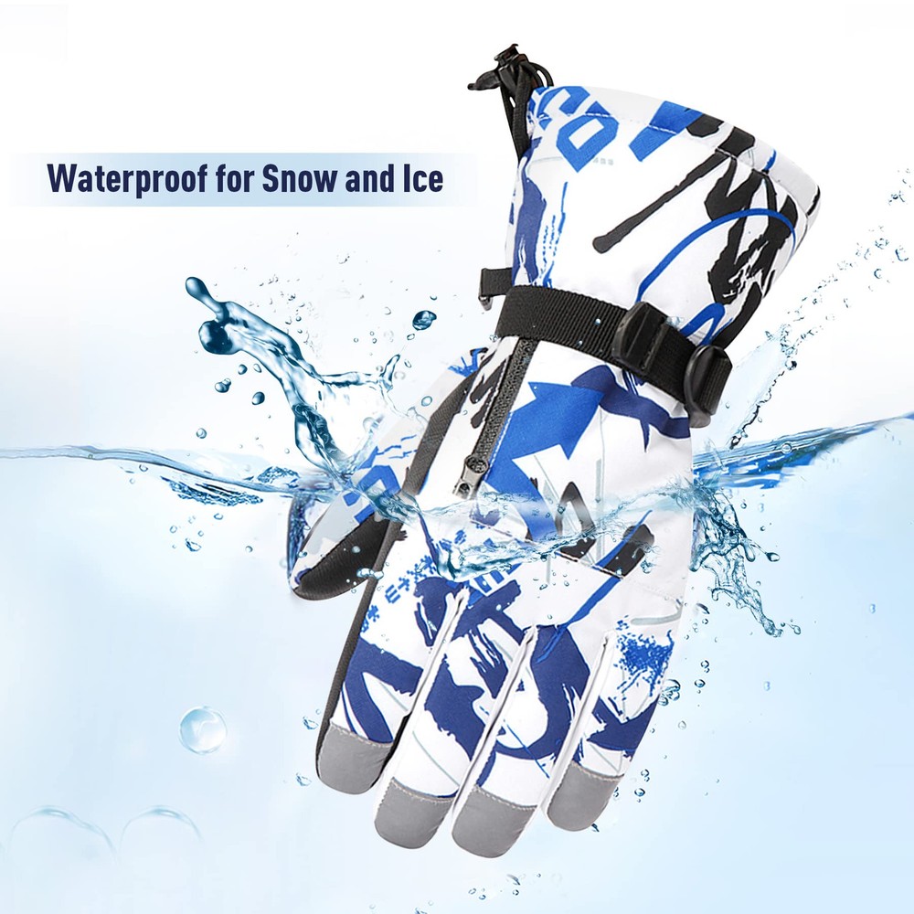 【Waterproof & windproof】Unlike the vast majority of ski gloves on the market that are just "waterproof", not only is the surface of the glove made of 100% waterproof and windproof fabric, but also the built-in waterproof membrane prevents water seepage, double guaranteeing high-density waterproof and windproof; in addition, the wrist is equipped with a windproof drawstring, which effectively prevents wind from entering through the wrist when you are playing outdoor sports. 【Upgraded 5-Finger Touch Screen & Fingertip Reflective Gloves】The ski gloves implement a full-finger touch screen design, so you don't need to take off the touch screen gloves when skiing or doing other winter sports. The reflective design of the fingertips allows you to be safer when doing outdoor sports such as skiing. The palm is made of PU material to increase friction and prevent slippage on the whole palm. 【Extremely insulated and comfortable ski gloves】If you are preparing for family winter outdoor activities, please choose these parent-child ski gloves with five-layer insulated design and super soft and warm lining to keep your hands warm even in the cold weather of -30 degrees Celsius, which can limit the cold and friction caused by wind chill and movement speed. 【Zippered Pocket & Anti-loss Buckle Design】The zippered pocket makes it easy to carry keys, cards, cash or other small items. The side buckle design prevents gloves from getting lost. 【Tips & Attention】The ski gloves are available in sizes XS, S, M and L. XS and S are suitable for children aged 6-8 and 9-13 years old, M for adult women and L for adult men.