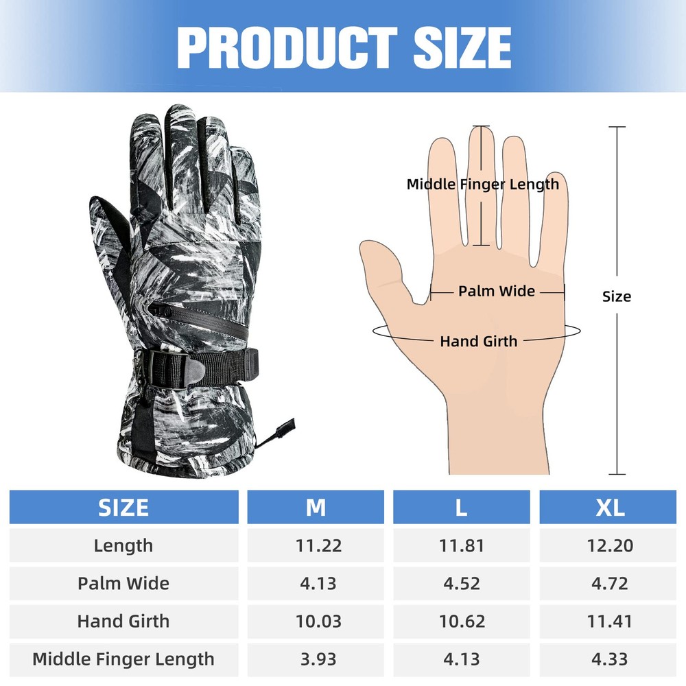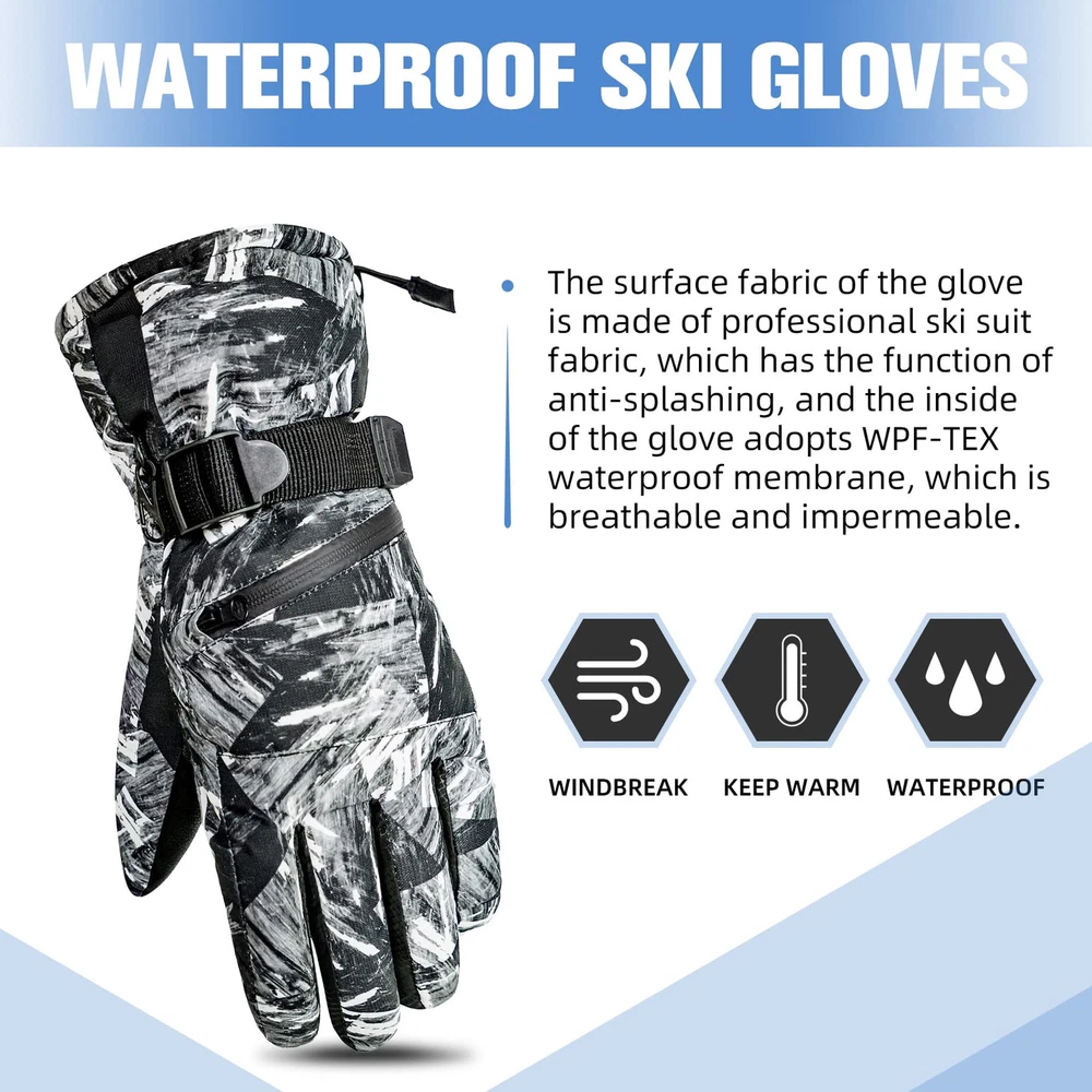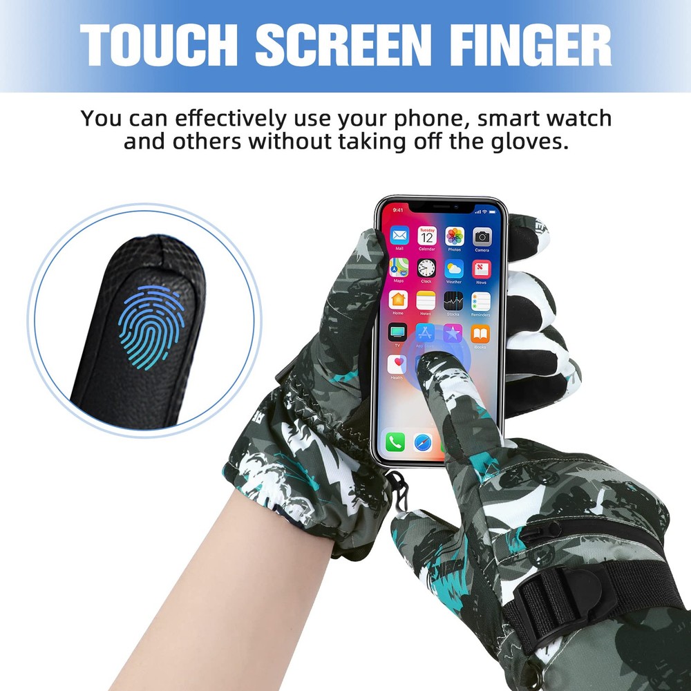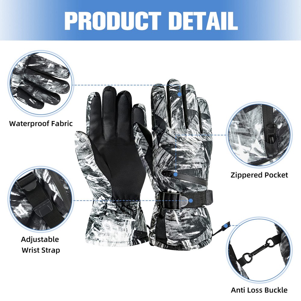 【Waterproof Winter Gloves】The snowboard gloves is made of carefully selected 100% polyester and the outer with waterproof material which effectively blocks the entry of water, suitable for winter outdoor skiing, snowball fights, climbing, work, etc. 【No-slip & Touch Screen Design】The palm of the cold weather gloves is made of PU non-slip fabric, which is soft and comfortable to ensure that your fingers are flexible in this snow gloves and let you firmly grip things. Touchscreen finger design which make you can effectively use your phone, smart watch and others without taking off the gloves. 【Adjustable & Prevent Loss Design】Adjustable straps and pull strings are useful for keeping snow out, you can tight it as much as you want. Card zipper pocket to carry your key card, ski pass and other small valuables. Anti-fall Hook to connect the gloves and prevent lost. 【Warm & Durable】Thicken fleeced lined can resist temperature from -22°F to -4°F, keep your hands warm. And the durable thermal gloves with strong and neat alignment can be used for a longer time. 【Occasion】Winter warm glove for women is suit for skiing, snowboarding, sledding, shoveling, playing the snow, motorcycle, cycling, mountain climbing and other outdoor occasions. This motorcycle gloves can to protect themselves from the cold during cold weather. Hand Wash recommended.
