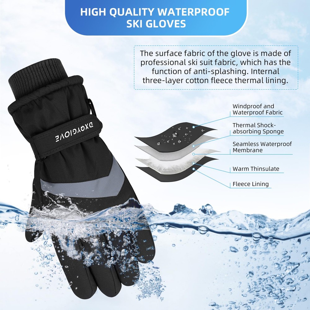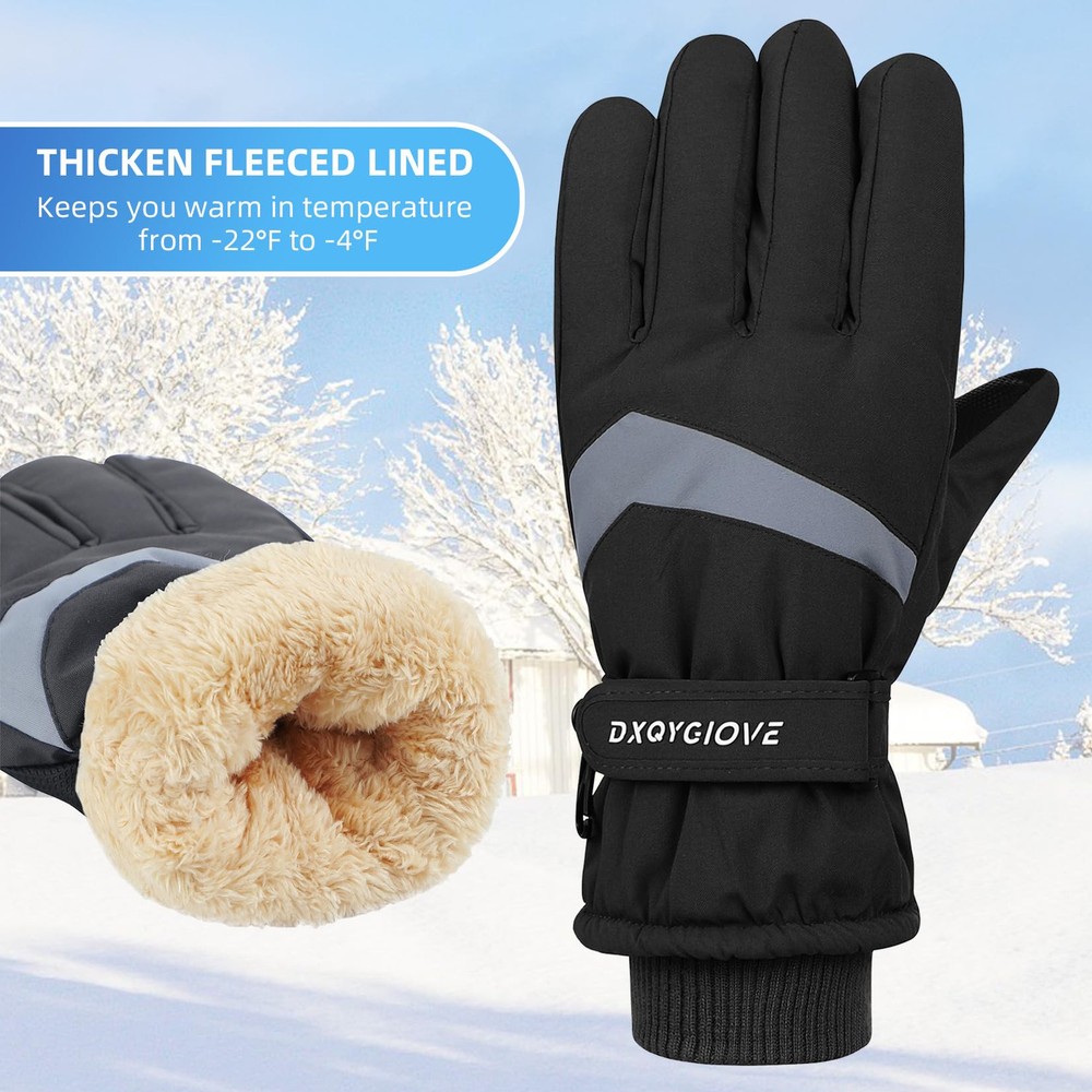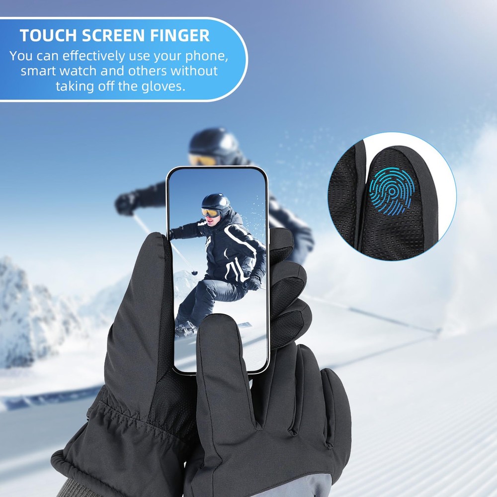 【Mens Waterproof Gloves】The ski gloves for men is made of carefully selected 100% polyester and the outer with waterproof material which effectively blocks the entry of water, suitable for winter outdoor skiing, snowball fights, climbing, work, etc. 【No-slip & Touch Screen Design】The palm of the mens cold weather gloves is made of PU non-slip fabric, which is soft and comfortable to ensure that your fingers are flexible in this snow gloves and let you firmly grip things. Touchscreen finger design which make you can effectively use your phone, smart watch and others without taking off the gloves. 【Adjustable & Prevent Loss Design】Adjustable straps and pull strings are useful for keeping snow out, you can tight it as much as you want. Anti-fall Hook to connect the men ski gloves and prevent lost. 【Warm & Durable】Thicken fleeced lined can resist temperature from -22°F to -4°F, and waterproof, wind-resistant nylon shell keep your hands warm. The durable thermal gloves with strong and neat alignment can be used for a longer time. 【Occasion】Winter warm glove for men is suit for skiing, snowboarding, sledding, shoveling, playing the snow, motorcycle, cycling, mountain climbing and other outdoor occasions. This motorcycle gloves can to protect themselves from the cold during cold weather. Hand Wash recommended.